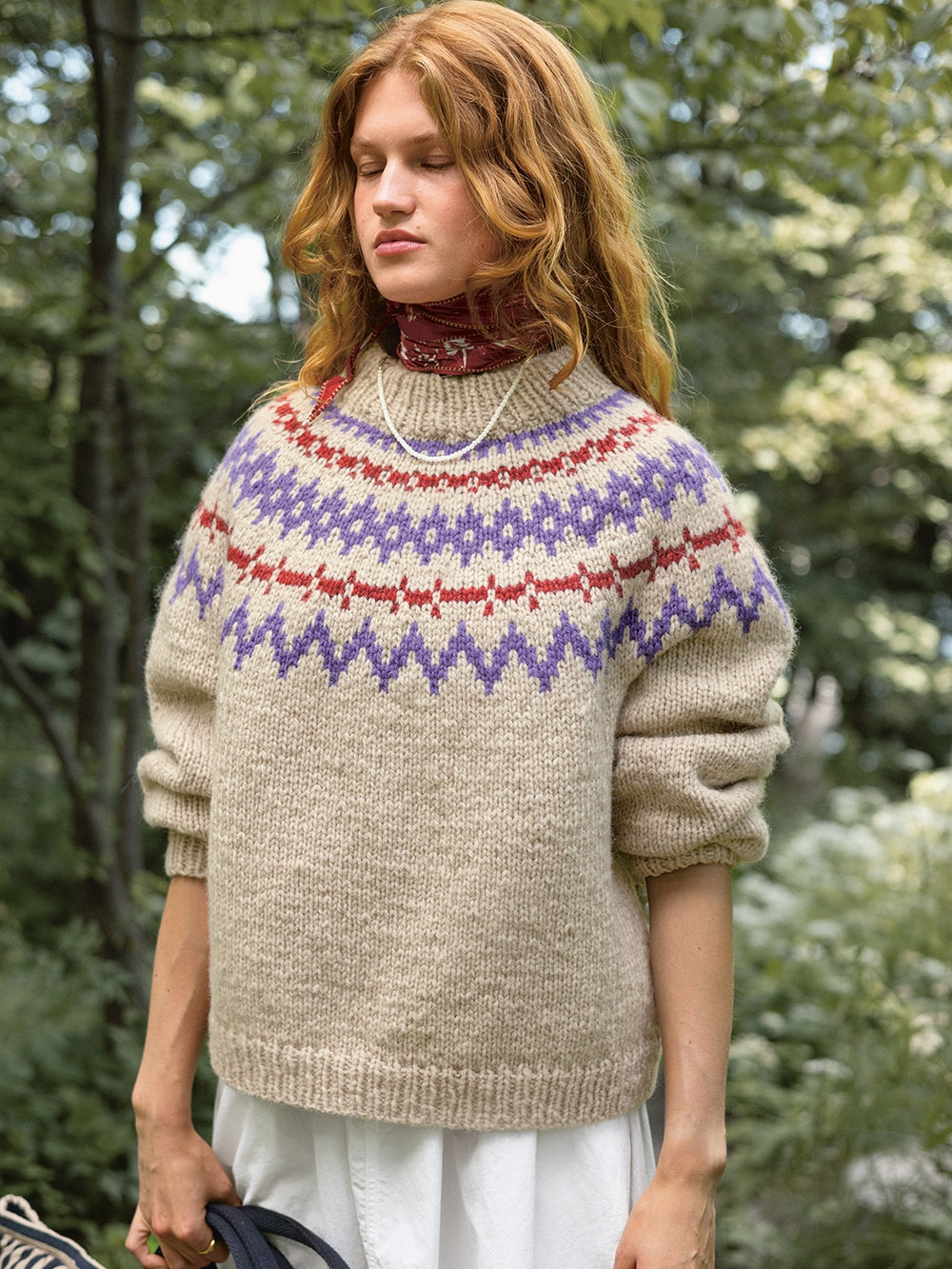 LeKnit Rosie Yoke Sweater Strikkepakke Peer Gynt og Tynn silk mohair