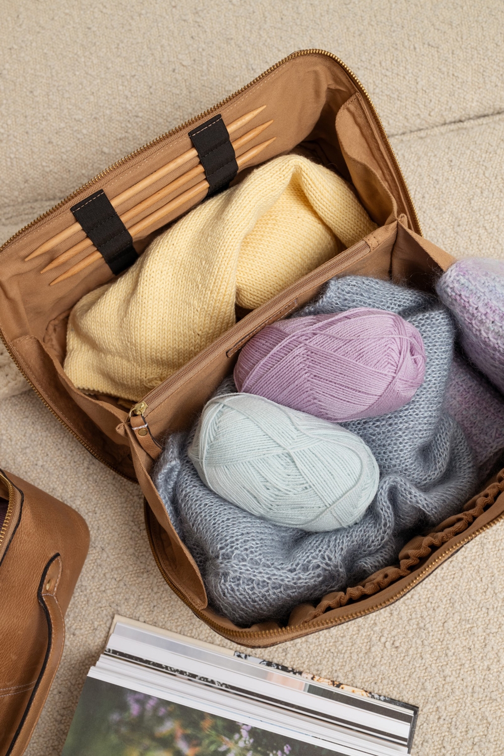 Re:Designed ble etablert i Danmark i 2003, og lager tidløse håndvesker i kvalitetsskinn. I Re:Designed Project serien finner du den ideelle vesken for alt du trenger til strikking.