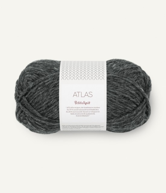 Atlas er spunnet av 70 % norsk lammeull og 30% merinoull. Resultatet er et varmt, mykt og lett garn med både styrke og karakter.