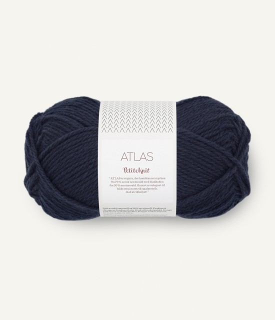 Atlas er spunnet av 70 % norsk lammeull og 30% merinoull. Resultatet er et varmt, mykt og lett garn med både styrke og karakter.