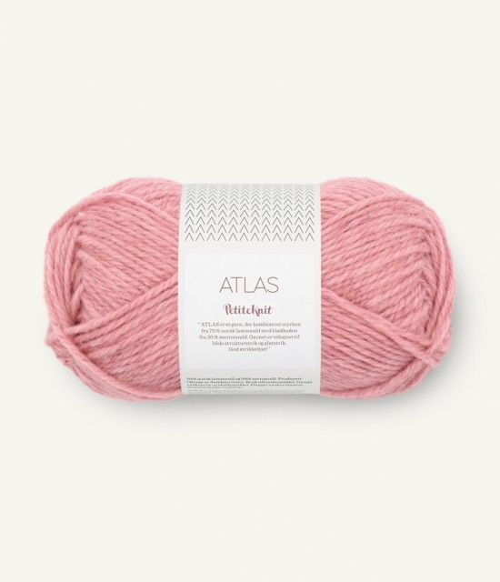 Atlas er spunnet av 70 % norsk lammeull og 30% merinoull. Resultatet er et varmt, mykt og lett garn med både styrke og karakter.