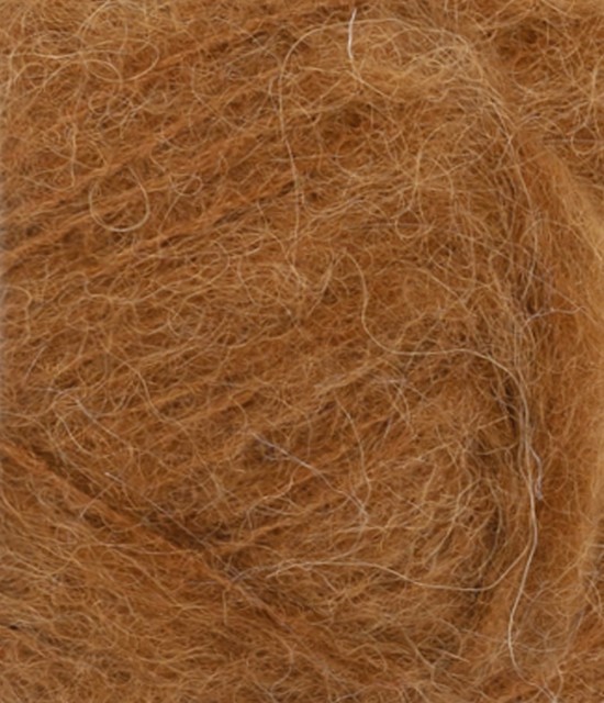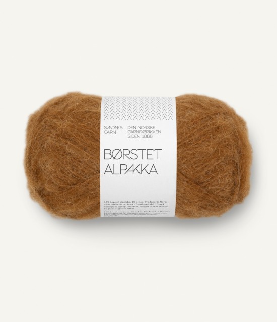 Børstet Alpakka består av alpakkafiber tvunnet sammen med en sterk nylontråd, som holder det hele sammen når alpakkafibrene blir børstet opp. Dette gir et mykt, lett og luftig garn med et loddent uttrykk.