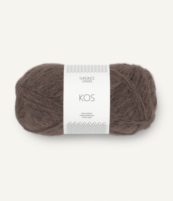 Kos består av alpakkafiber som sammen med ull blir blåst inn i en nylonstrømpe. Dette gir et mykt, lett og luftig garn.