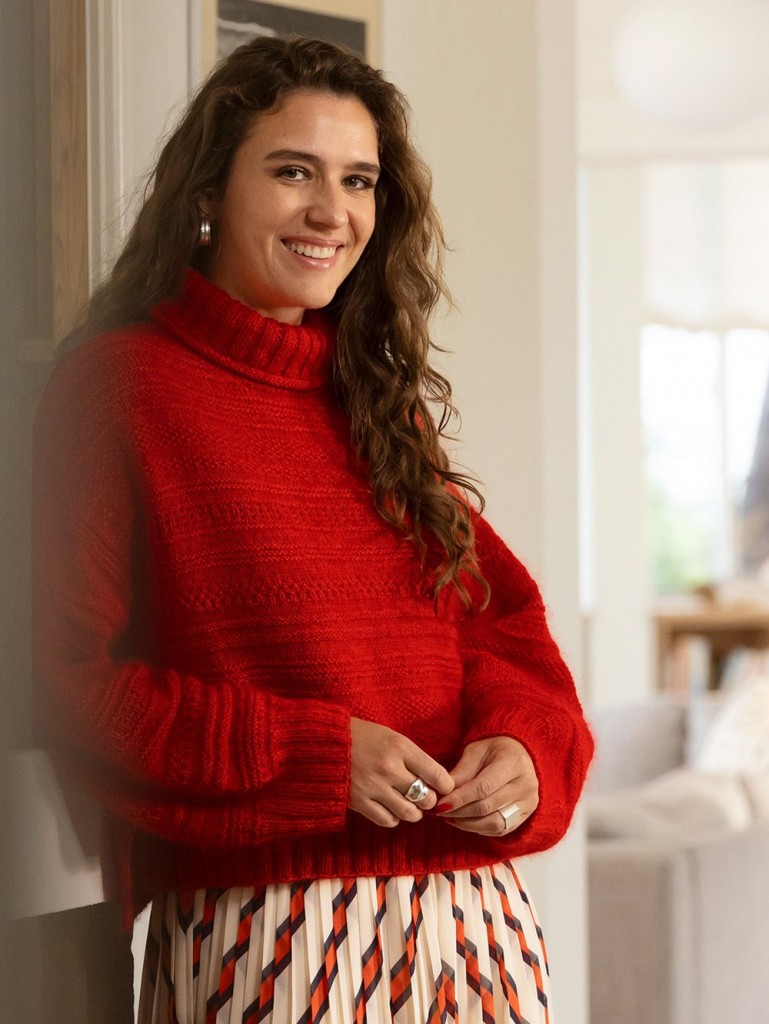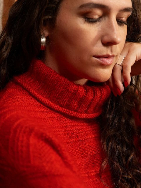 genseren som leker med lyset og skaper skygger i det myke strikketøyet. Her smelter teknikker og