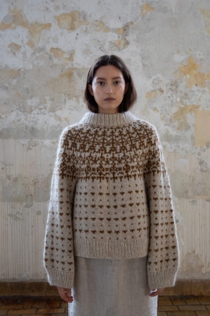 Denne genseren er en del av kolleksjonen 'Efterår', som er et samarbeid mellom Hillesvåg Ullvarefabrikk og Anne-Sophie Nørby Velling / / Augustins.