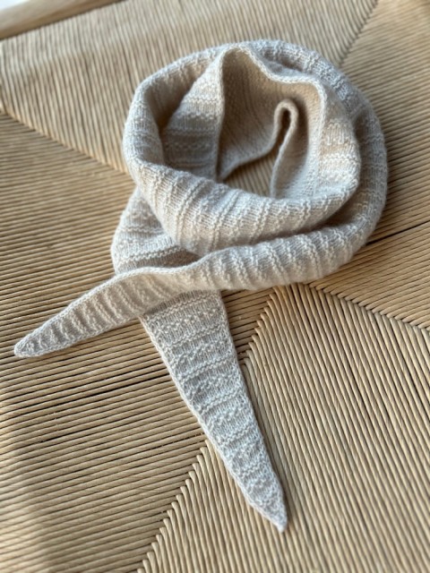 Tørkleet strikkes frem og tilbake, fra spiss til spiss. Arbeidet starter med økninger som former den første spissen, før man går over i et langt midtparti med strukturmønster. Til slutt formes den andre spissen med tilsvarende fellinger. Med enkle teknikker, tydelig struktur og rask progresjon gir det både strikkeglede og et svært anvendelig sluttprodukt.