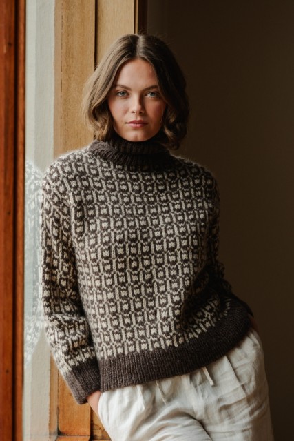 Denne oppskriften er unisex, og viser hvordan genseren kan strikkes med et henholdsvis feminint eller maskulint uttrykk. Merk at lengdene og garnmengdene varierer mellom de 2 uttrykk, men at selve størrelsen er lik for begge, og velges ut fra hvilken overvidde du har og hvilken lengde du foretrekker – uavhengig av kjønn.