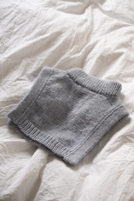 Garnalternativ: 1 tråd Sol lamullgarn, 409 lys blågrå, sammen med 1 tråd Silk Mohair 41, Isager (212 m pr. 25 g)