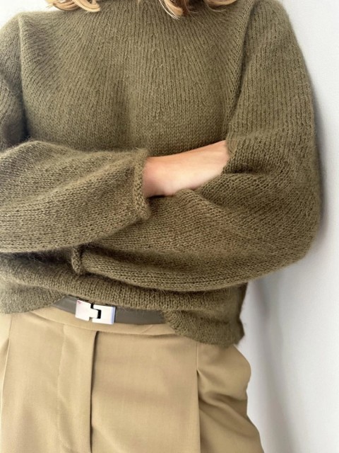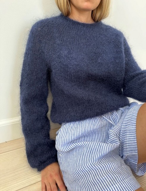 Plain Yoke Blouse er glattstrikket og helt enkel – også å strikke. Den doble kanten nederst gir en fin finish og et fint fall. Ermer og hals har rullekant i glattstrikk. Oppskriften inneholder både Detailed Edition og den enda enklere Debutant Edition som er uten vendepinner i halsutskjæringen.