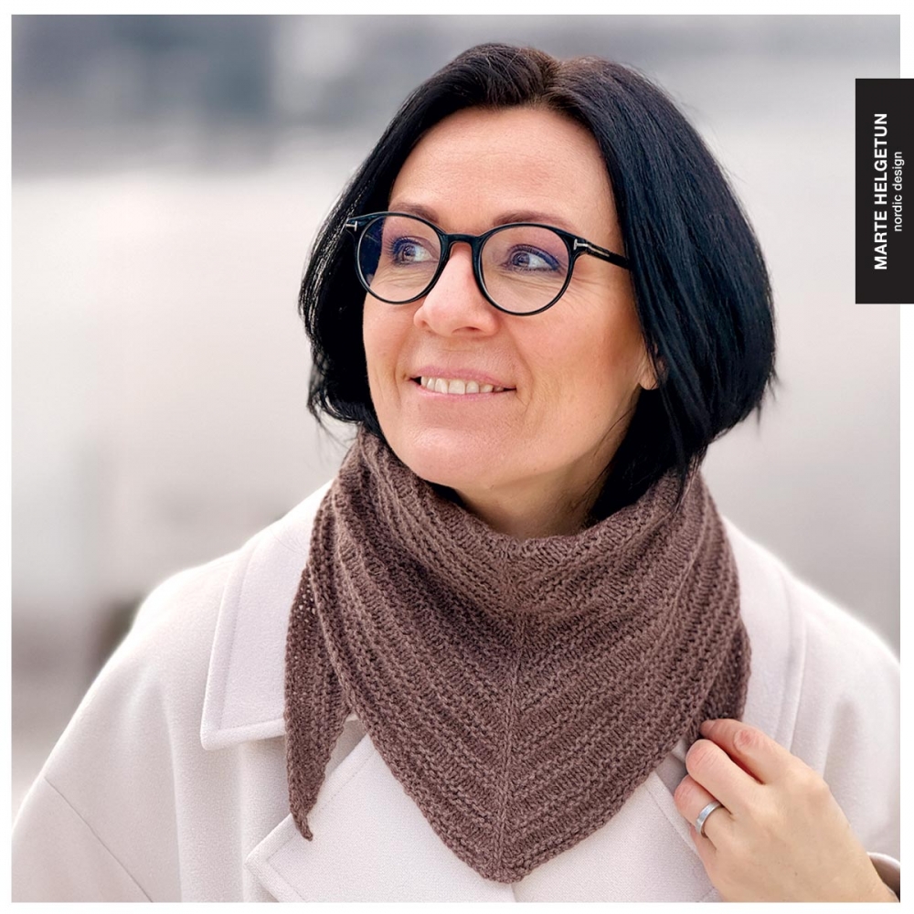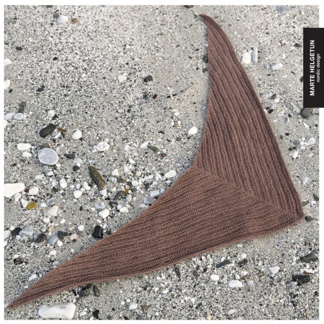 Du starter du med noen få masker midt på langsiden oppe ved ansiktet, og øker deg utover til du har strikket opp hele nøstet. her er det garnmengden som avgjør størrelsen på sjalet. Det brune sjalet er strikket av to nøster REN Cashmere i fargen Bark.