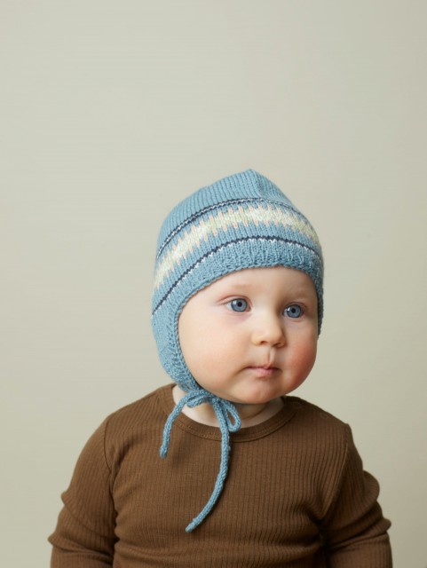 Vestfoldluen har mønster inspirert fra mønsteret til Vestfoldbunaden. Den har øreklaffer. Den strikkes rundt nedenfra og opp.