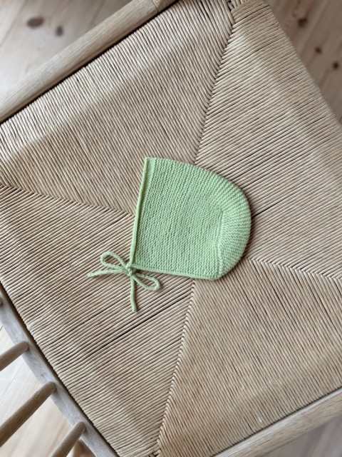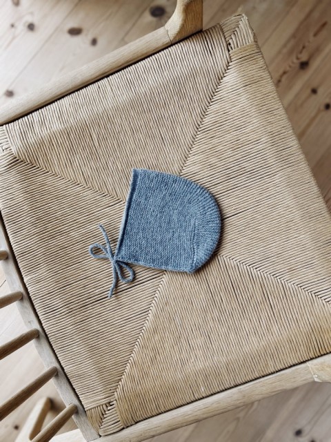 Kysa strikkes i Lun Merino, et tynt, mykt luftig garn i 100 % merinoull. Garnet er skånsomt mot sensitiv babyhud, samtidig som det bidrar med varme og komfort. Den strikkes i rillestrikk med vendinger og fellinger integrert i rillene – en smart konstruksjon som gir god plass til babyens naturlig runde bakhode. Den glattstrikkede kanten sørger for at luen sitter godt rundt ansiktet og holder babyen varm.