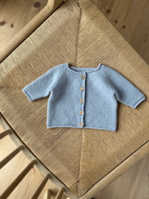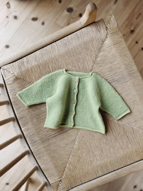 Jakken strikkes i Lun Merino, et mykt og luftig kardegarn av merinoull. Maskene legger seg jevnt og pent, og rillestrukturen fremheves uten at plagget blir tungt eller kompakt. På kroppen er følelsen lun, nær og behagelig. Lun Merino gir varme uten tyngde, samtidig som det er skånsomt mot huden. Resultatet er mykt, komfortabelt og vakkert.