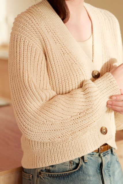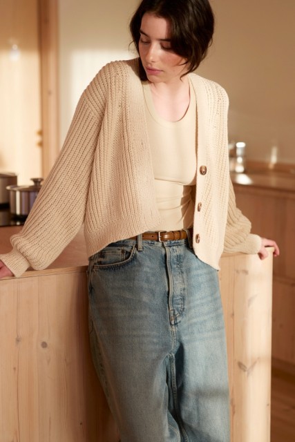 Strikket i bomull er den perfekt for den norske sommeren og en garderobe med lin, sommerkjoler og enkle sommerplagg. Dette er jakken du tar frem sommer etter sommer – et skikkelig godt basisplagg, med det lille ekstra.