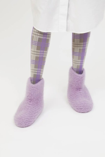 Disse tovede tøflene er høye, tykke og varme. Med sitt brede skaft, er de lette å kippe av og på selv om de er høye. Tøflene strikkes med dobbelt garn i rillestrikk, frem og tilbake, nedenfra og opp. Oppleggskanten er midt under, og avfellingen er toppen av tøffelen. Det felles midt i arbeidet for å skape formen midt oppå foten, før man fortsetter oppover til ønsket høyde. Tøflene maskes sammen midt under og sys sammen midt bak. Siden toves tøflene i vaskemaskin. Bruk gjerne opp restegarn i disse deilige tøflene!