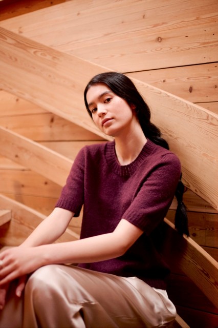Lun Lauratee er en delikat, glattstrikket t‑skjorte med et klassisk uttrykk. Silhuetten er enkel og rett med skrå skuldre, rund hals og korte ermer. Den strikkes ovenfra og ned med en sammensatt konstruksjon som gir en behagelig og pen passform. Strikket i Lun Merino er T-skjorten myk, lett og deilig mot huden. Lun Lauratee passer både til jobb og i hverdagen, og kan enkelt styles opp til festligere anledninger. Den er enkel i uttrykket, men rik på kvalitet – et stille, sikkert og varig valg i garderoben.