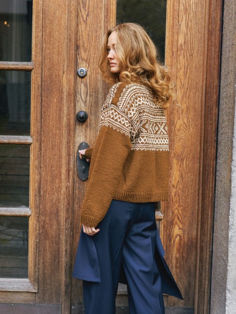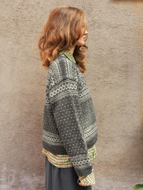 Setesdal damekofte i Peer Gynt kan strikkes både ovenfra og ned og nedenfra og opp, med eller uten lus på bol og ermer. Denne er med lus.