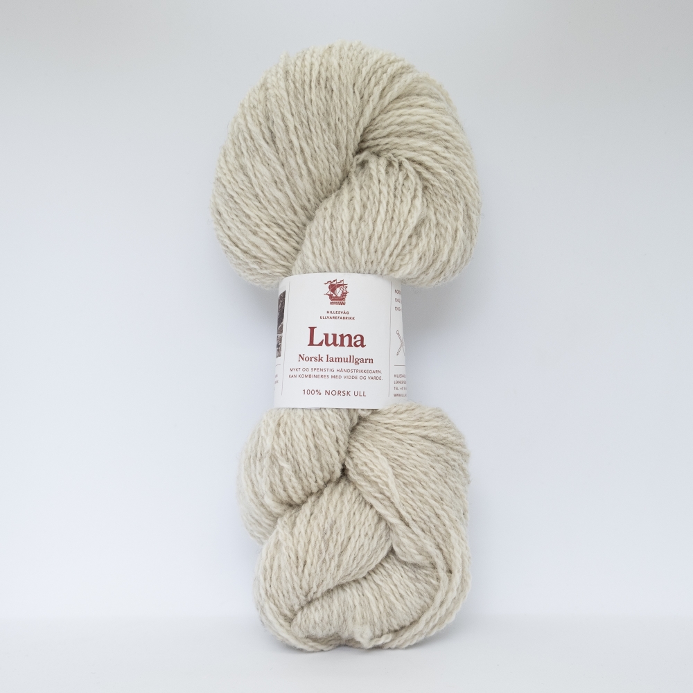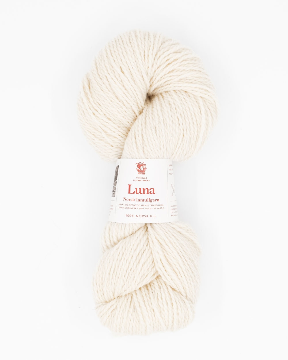 Hillesvåg Luna Lamullgarn Ubleket hvit 400 PrisNOK142,00 inkl. mva. Kjøp Luna lamullgarn – et mykt og spenstig håndstrikkegarn, kan kombineres med Vidde lamullgarn og Varde pelsullgarn. 100% norsk ull.