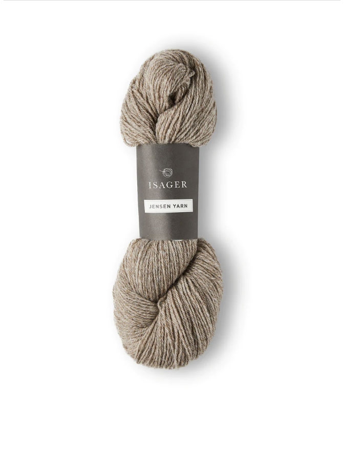 Jensen Yarn fra Isager er en fantastisk og ren ulltråd spunnet i Danmark. Et stabilt tretrådsgarn, fast og jevn spunnet, og gjør seg godt til strukturstrikk. Strikket med en tråd alene anbefales pinne 3,5 m.