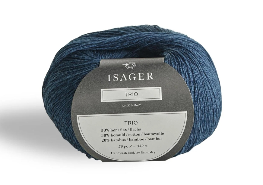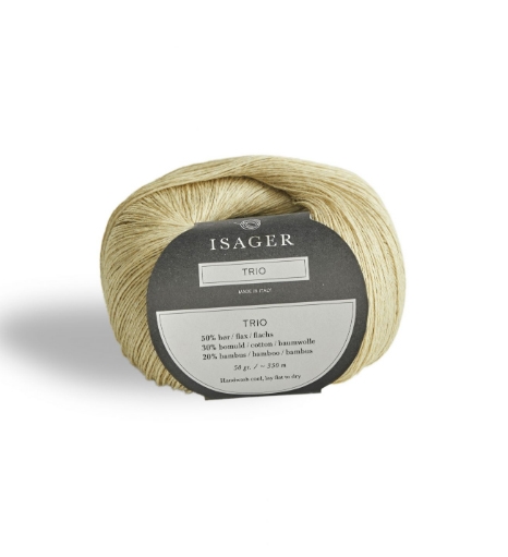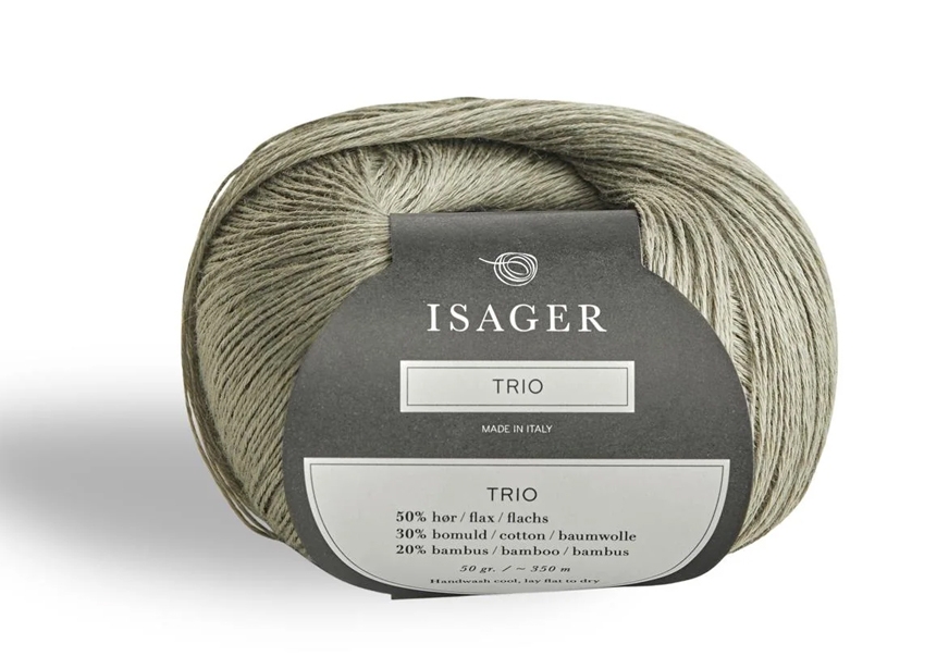 Isager Trio 1 Linen PrisNOK93,00 inkl. mva. Kjøp TRIO 1 50% hør, 30% bomuld og 20% lyocell Løbelængde: 350 m / 50 gr.