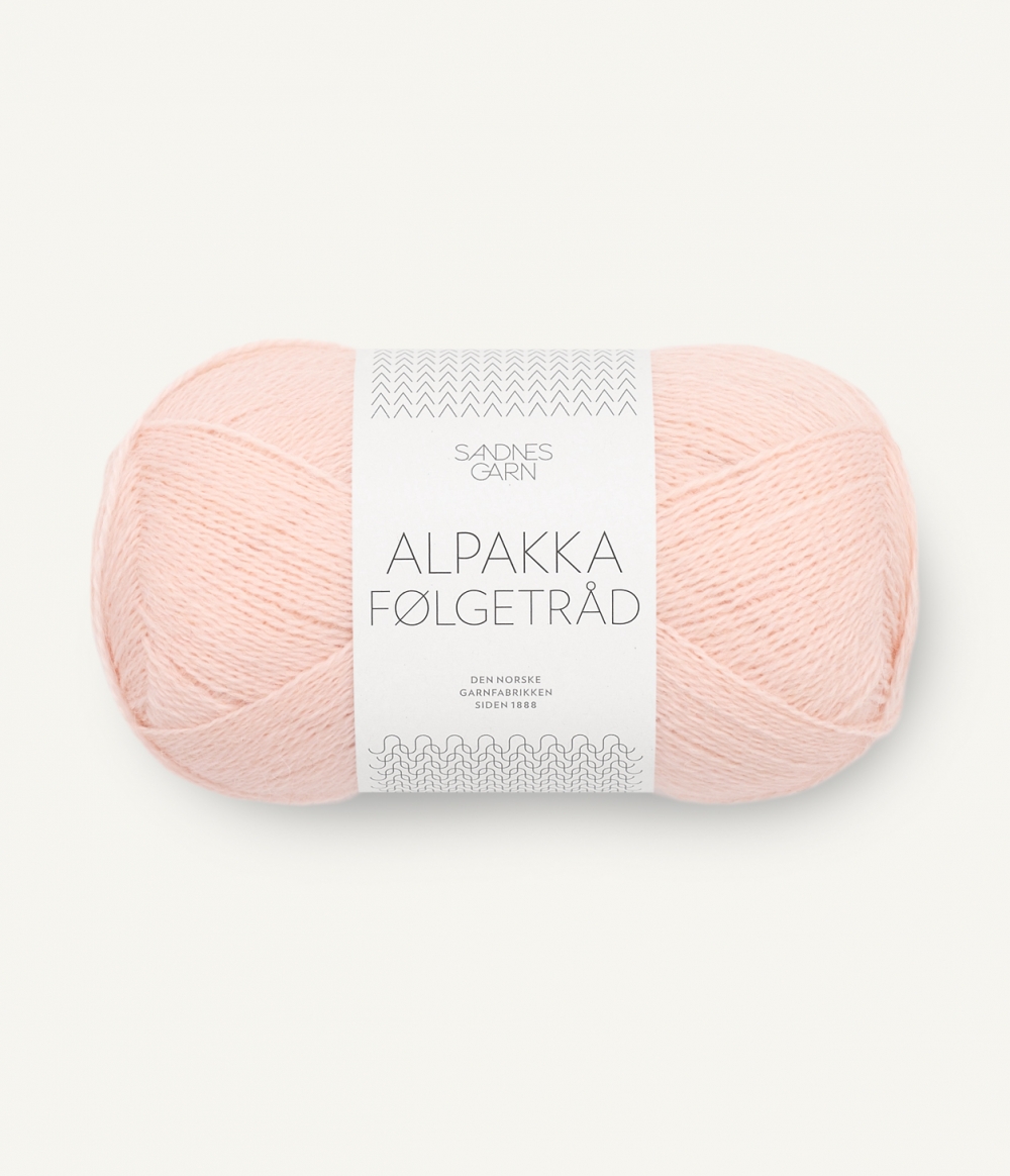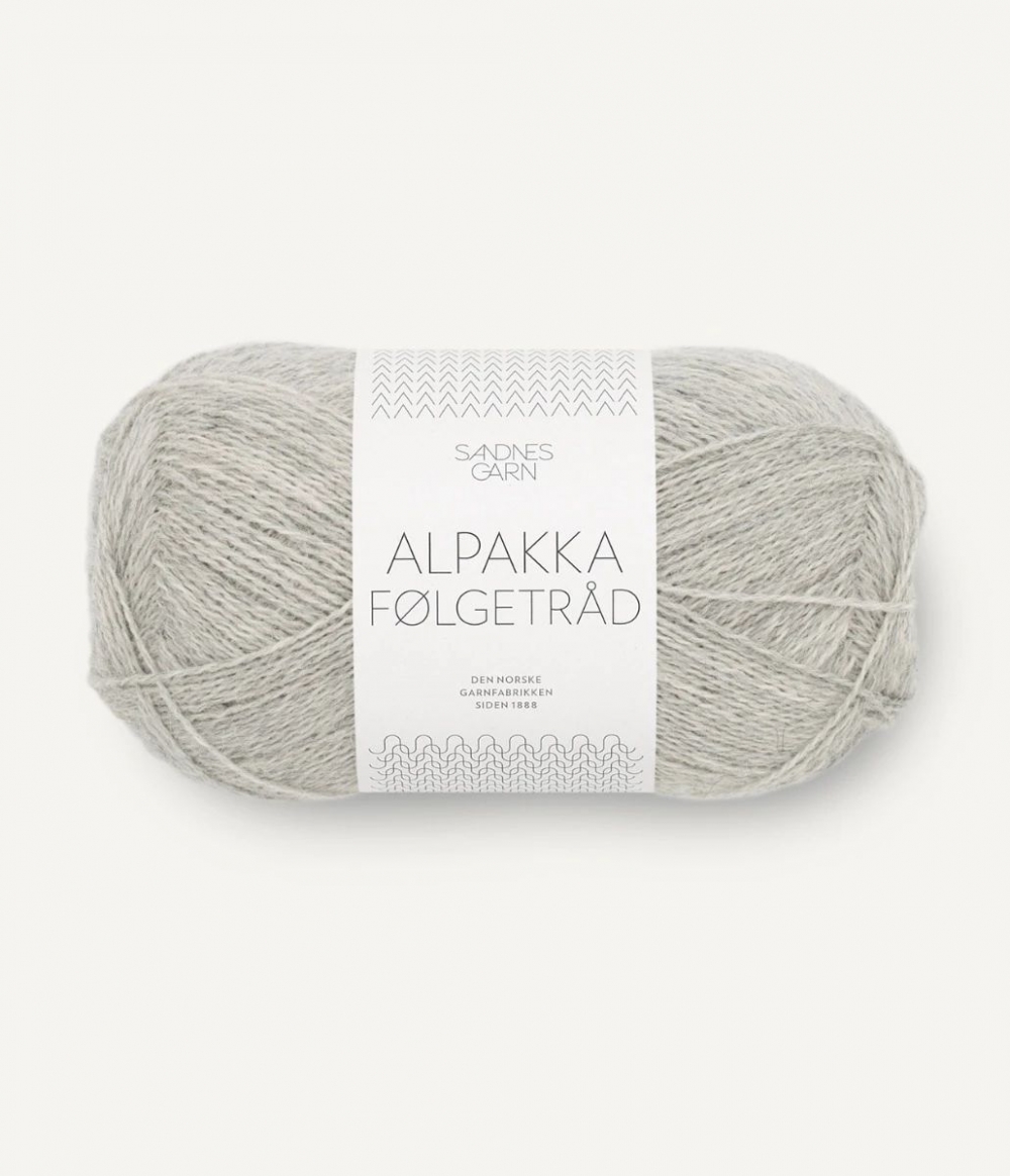 ALPAKKA FØLGETRÅD er et alternativ til TYNN SILK MOHAIR for de som ikke ønsker et fluffy uttrykk. Utvalget starter nå med 6 farger i en 2-tråds alpakka.