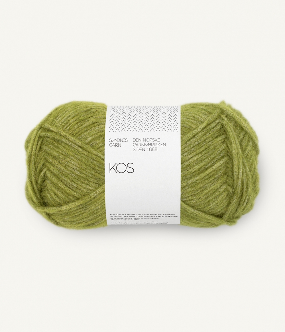 KOS er et mykt og lett alpakkagarn som passer til baby, barn og voksen. Perfekt til både små og store plagg. Garnet inneholder 62% baby alpakka, 9% ull og 29% nylon. Løpelengde pr. nøste (50 gr) = ca 150 meter. Plagget må vaskes separat. Alpakka til denne kvaliteten kommer fra Peru. Ull fra Uruguay Vår leverandør har garantert at ullen vi kjøper ikke kommer fra sauer som har blitt utsatt for mulesing.