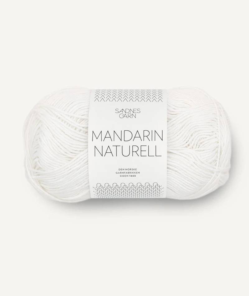MANDARIN NATURELL inneholder 100 % bomull. Mykt og delikat bomullsgarn velegnet til baby, barn og voksne. Passer også utmerket til interiørprodukter som håndkle, kluter og grytekluter. Løpelengde pr. nøste (50 gr) = ca 135 meter. Plagget må vaskes separat. Råvaren til denne kvaliteten kommer fra India.