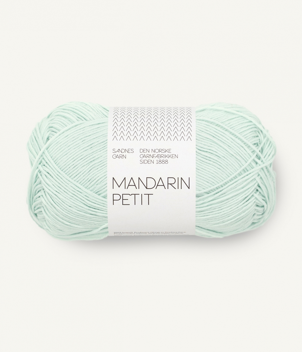 MANDARIN PETIT inneholder 100 % bomull. Mykt og delikat bomullsgarn velegnet til baby, barn og voksne. Passer utmerket til interiørprodukter som håndkle, kluter og grytekluter. Løpelengde pr. nøste (50 gr) = ca 180 meter. Plagget må vaskes separat. Råvaren til denne kvaliteten kommer fra India.
