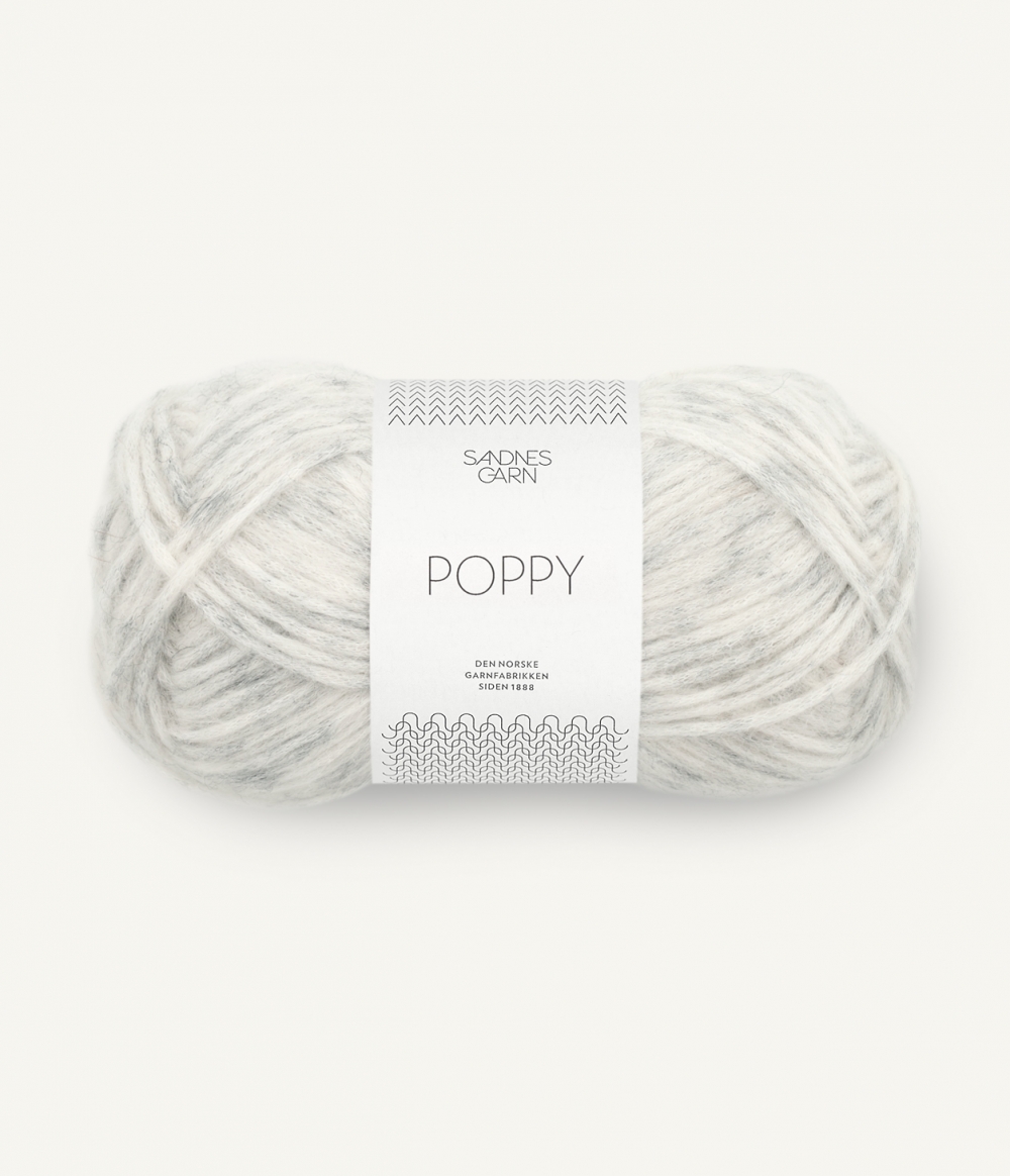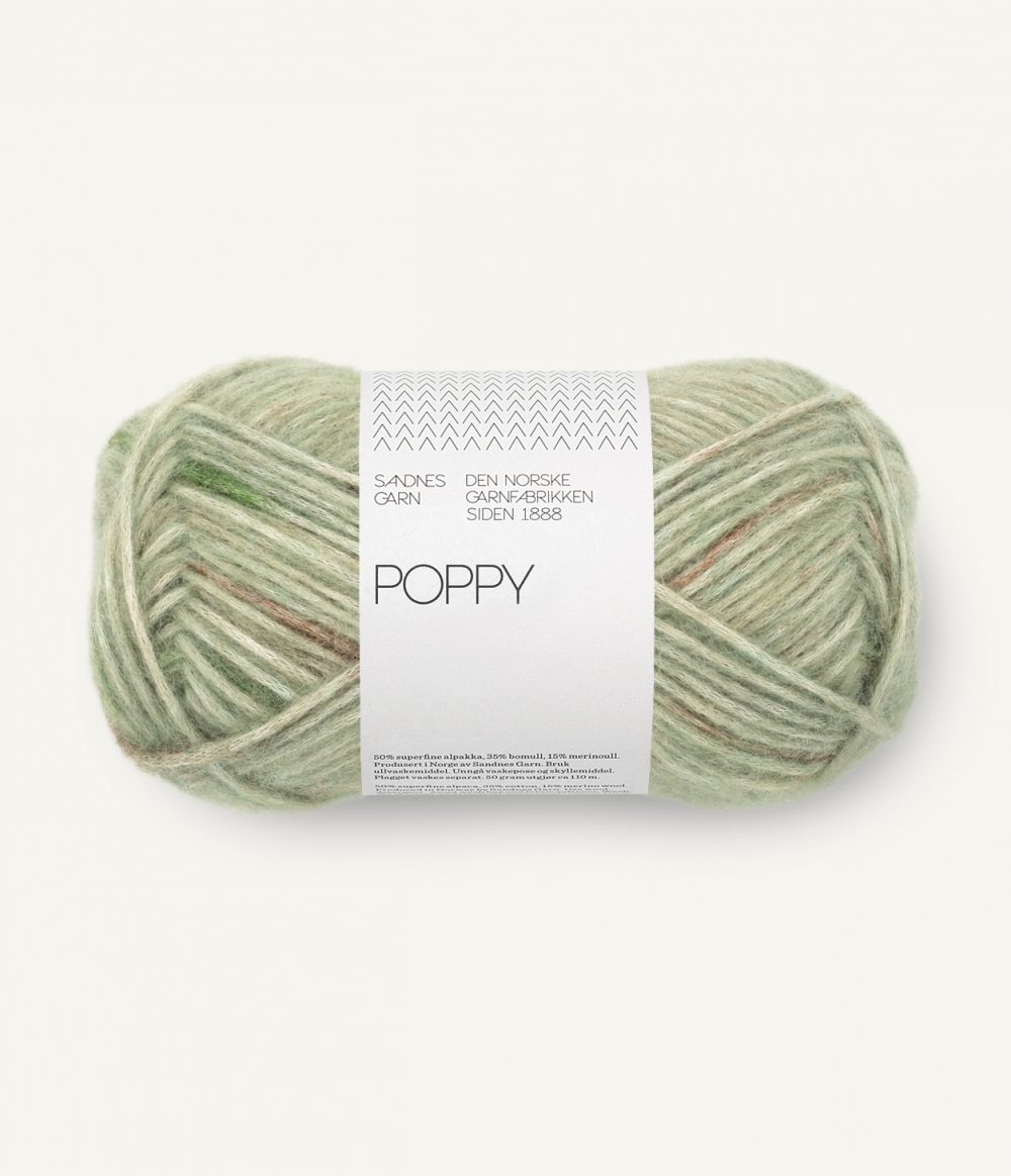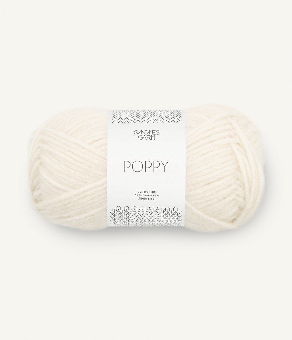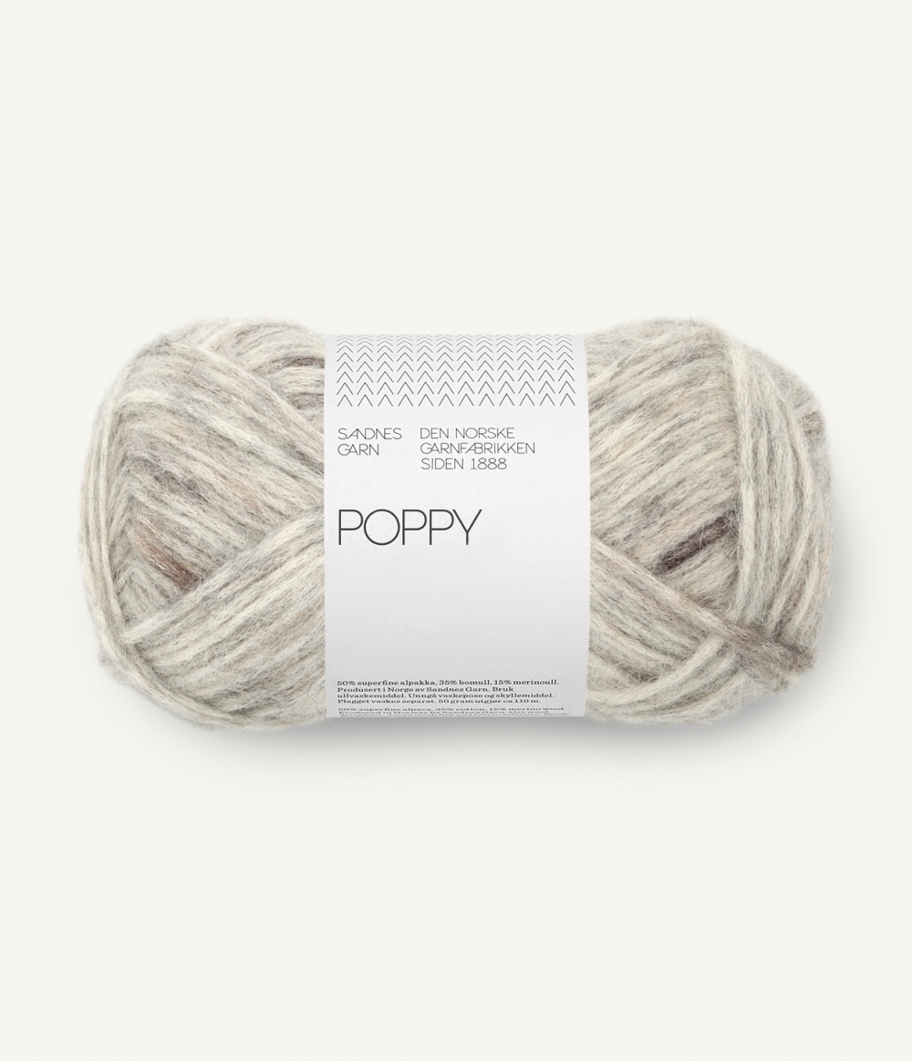 POPPY består av alpakkafiber som sammen med ull blir blåst inn i en bomullsstrømpe. Dette gir et mykt, lett og luftig garn.