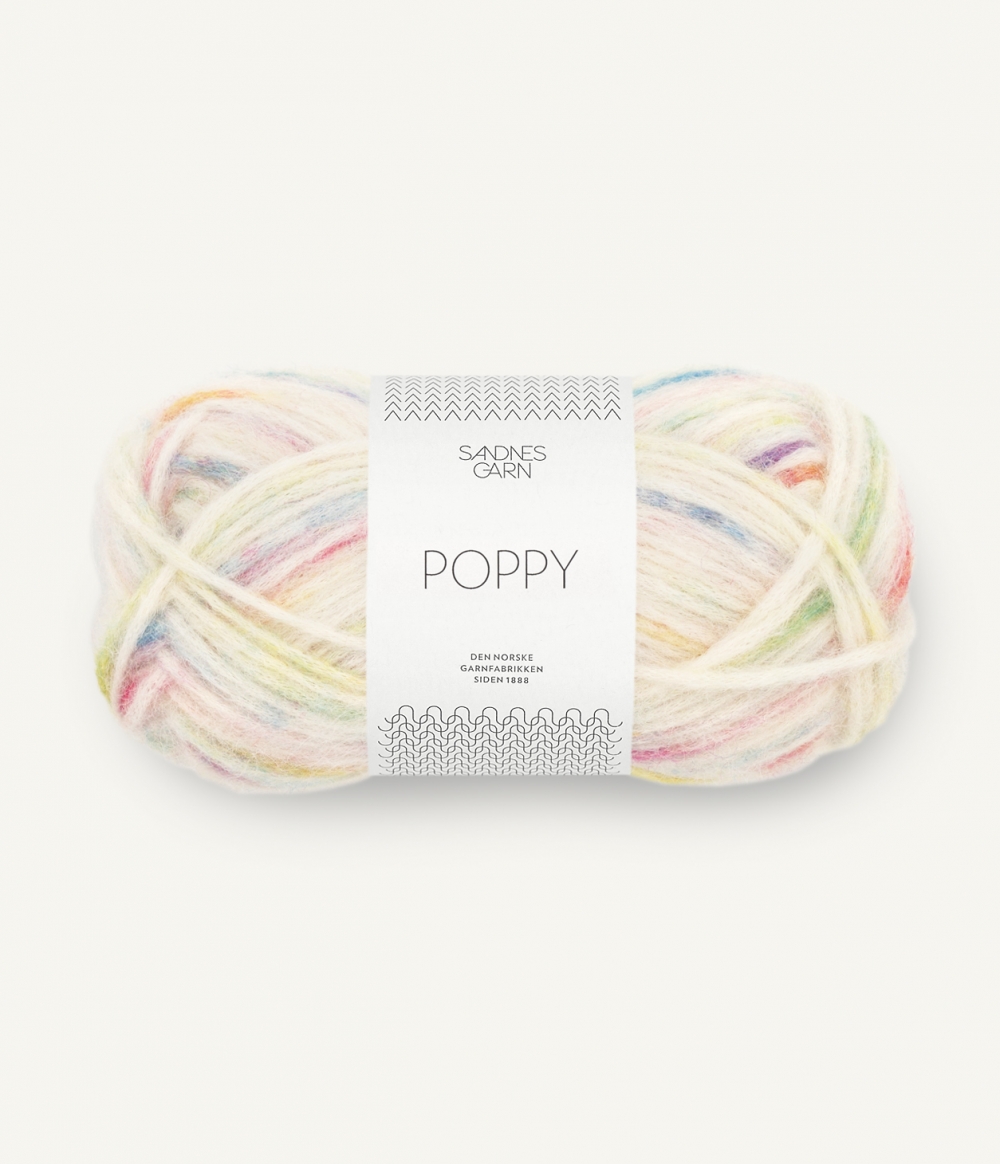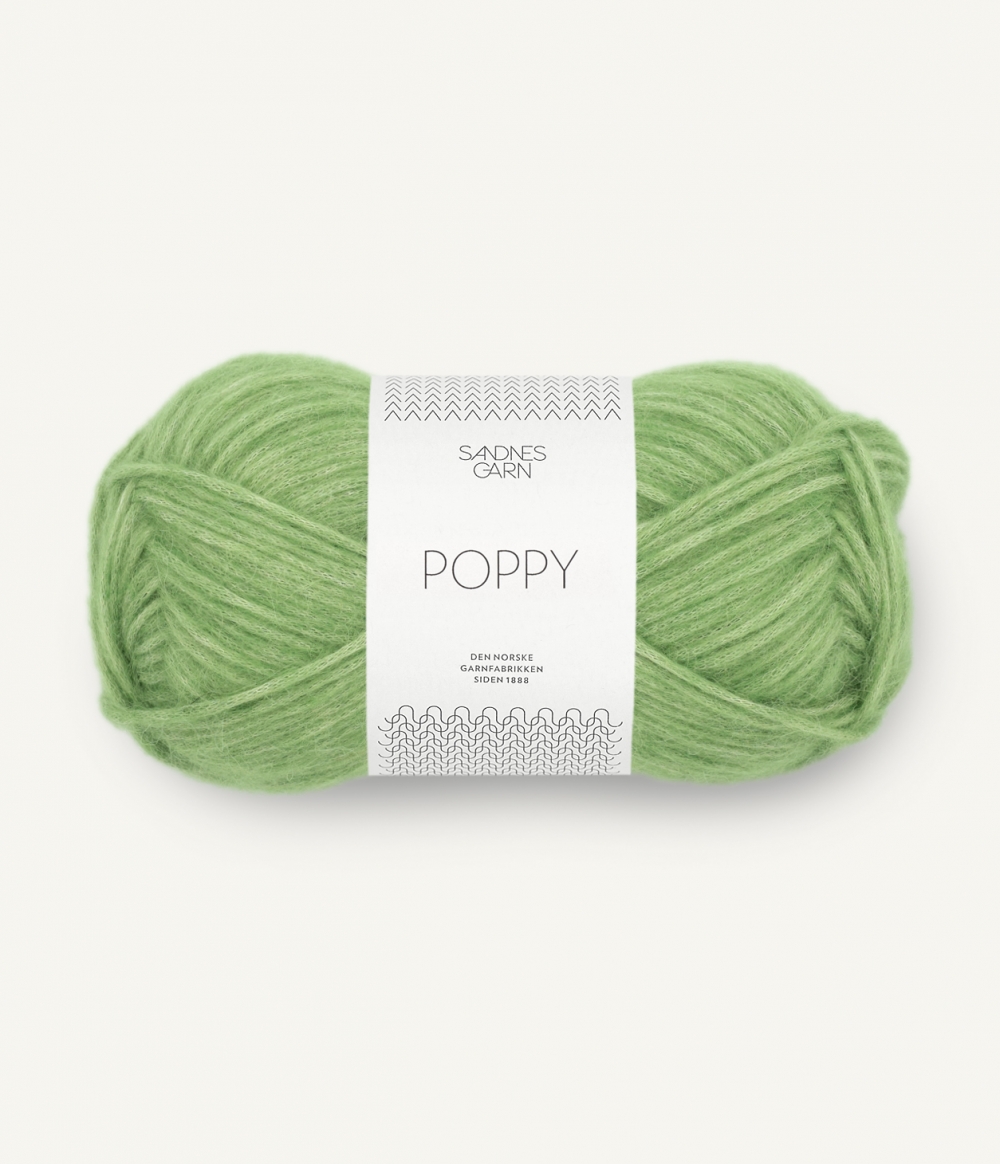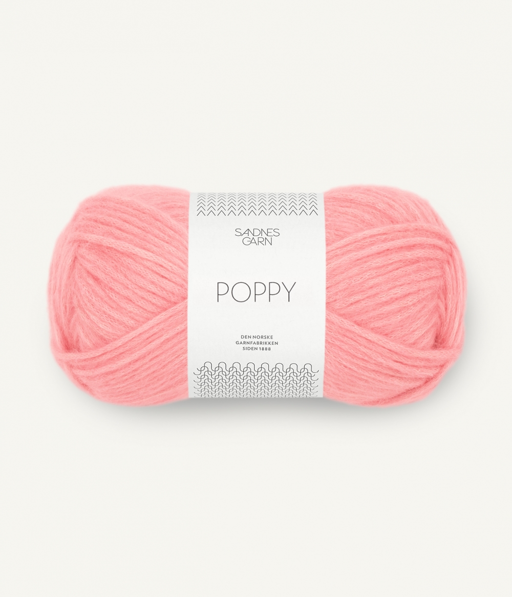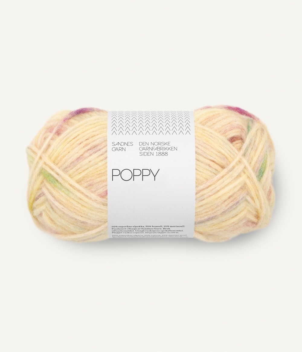 POPPY består av alpakkafiber som sammen med ull blir blåst inn i en bomullsstrømpe. Dette gir et mykt, lett og luftig garn.