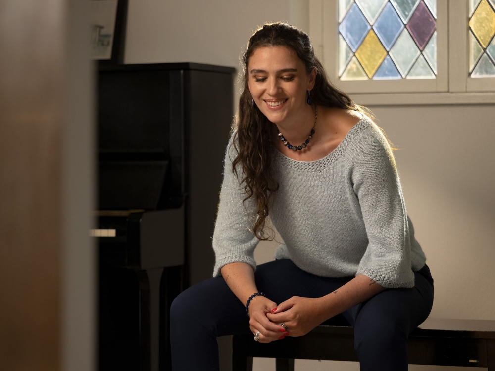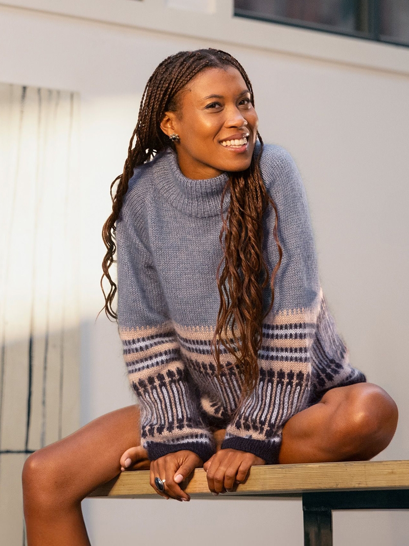 LeKnit Rosie Yoke Sweater Strikkepakke Peer Gynt og Tynn silk mohair