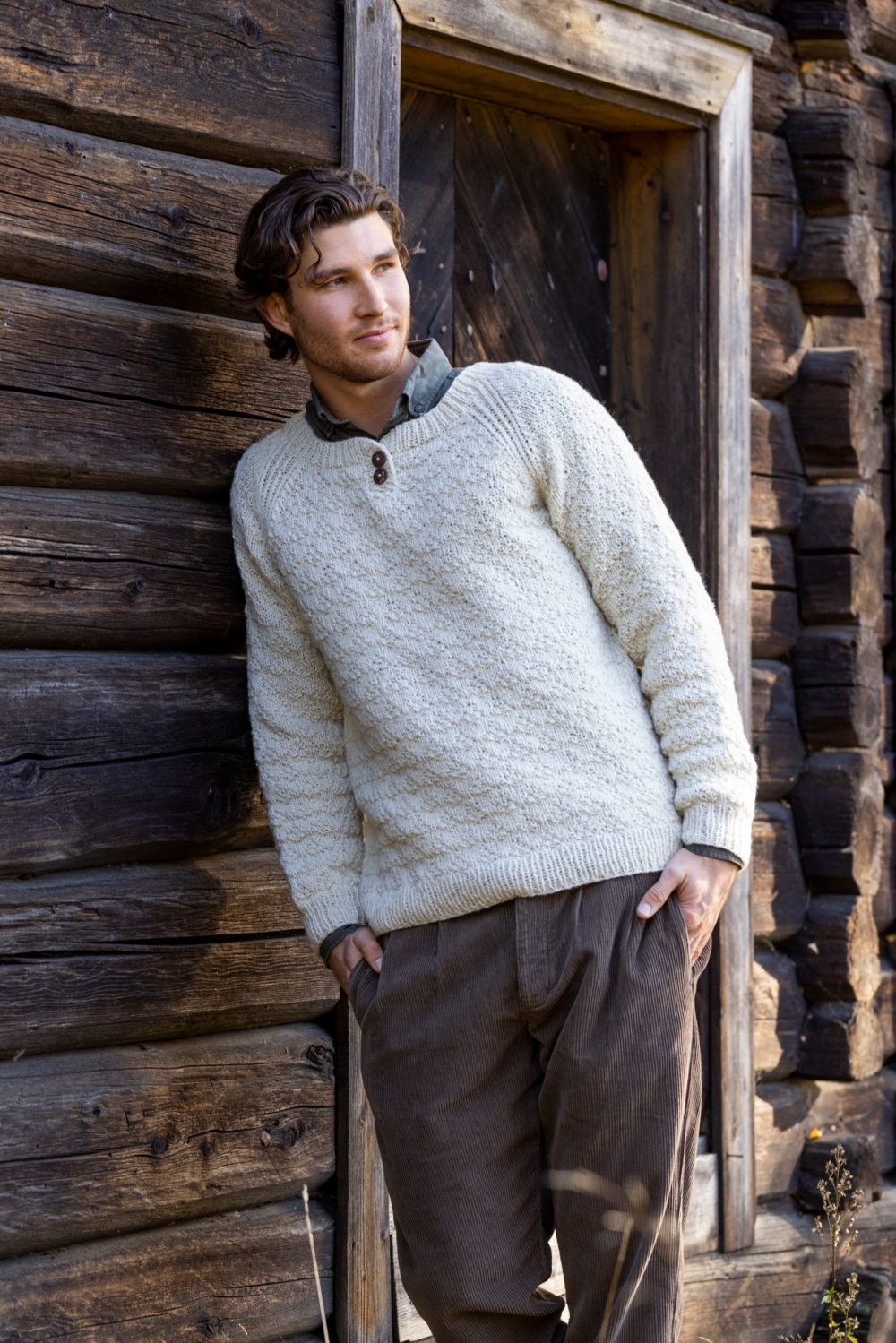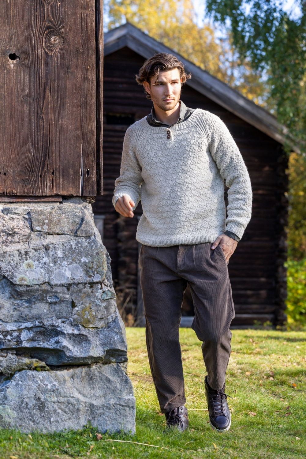 T26-23 Islender herre raglan Peer Gynt NATUR OG GRÅMELERT
