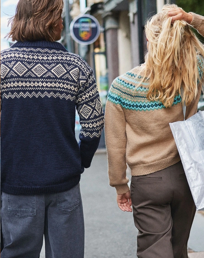 Islenderen går aldri av moten. Denne versjonen har raglanfelling med en flott bord i midten. Strikkepakken er med garn og (gratis) oppskrift fra Rauma Garn
