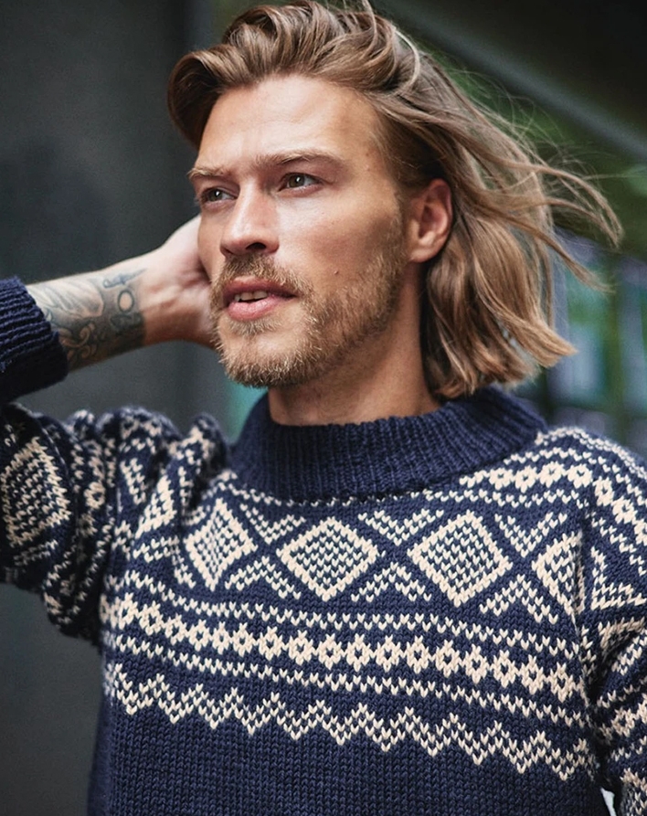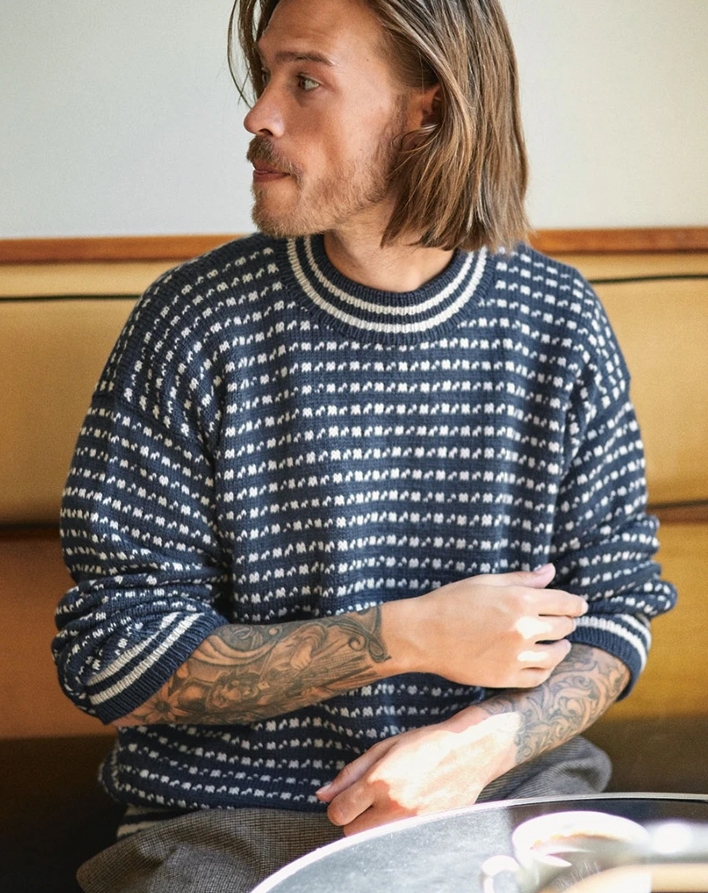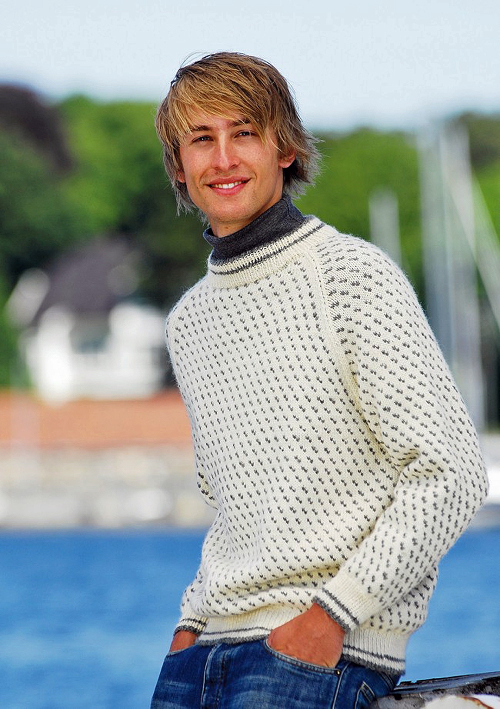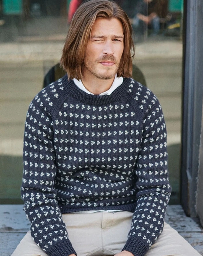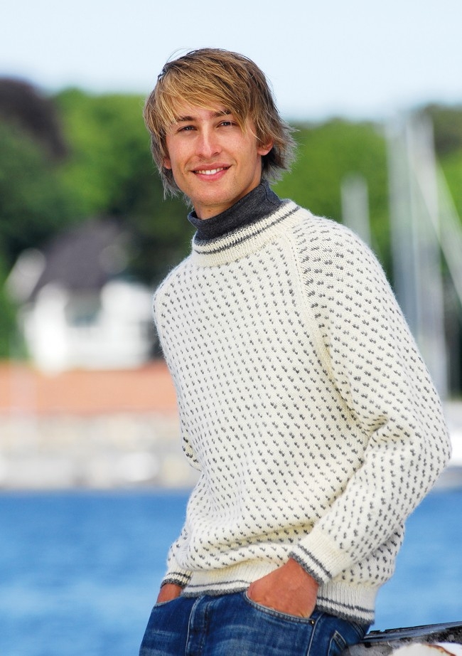 Lyngør genser til herre i KOS garn fra Sandnes Garn. Strikkepakke med garn og oppskrift.