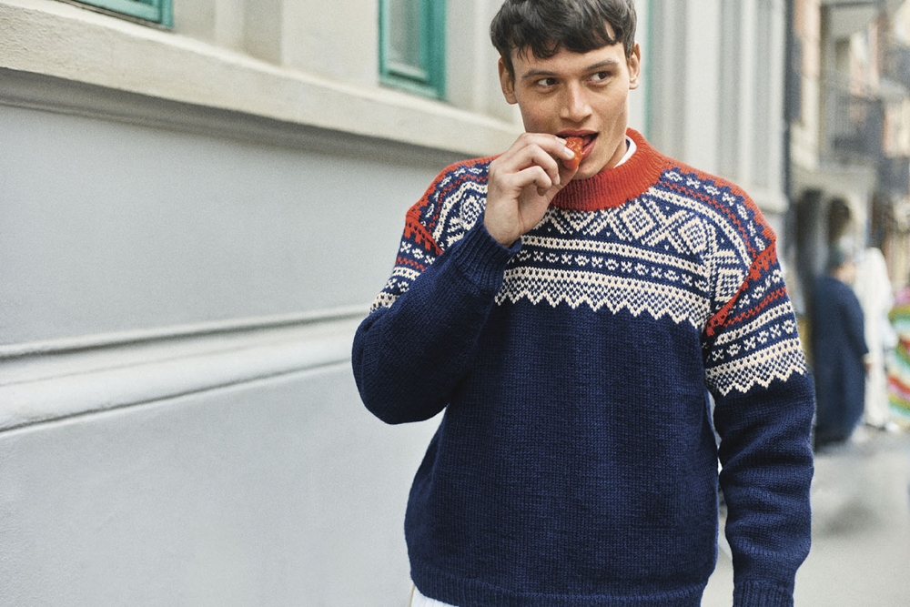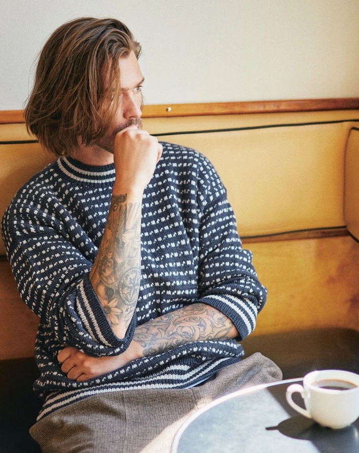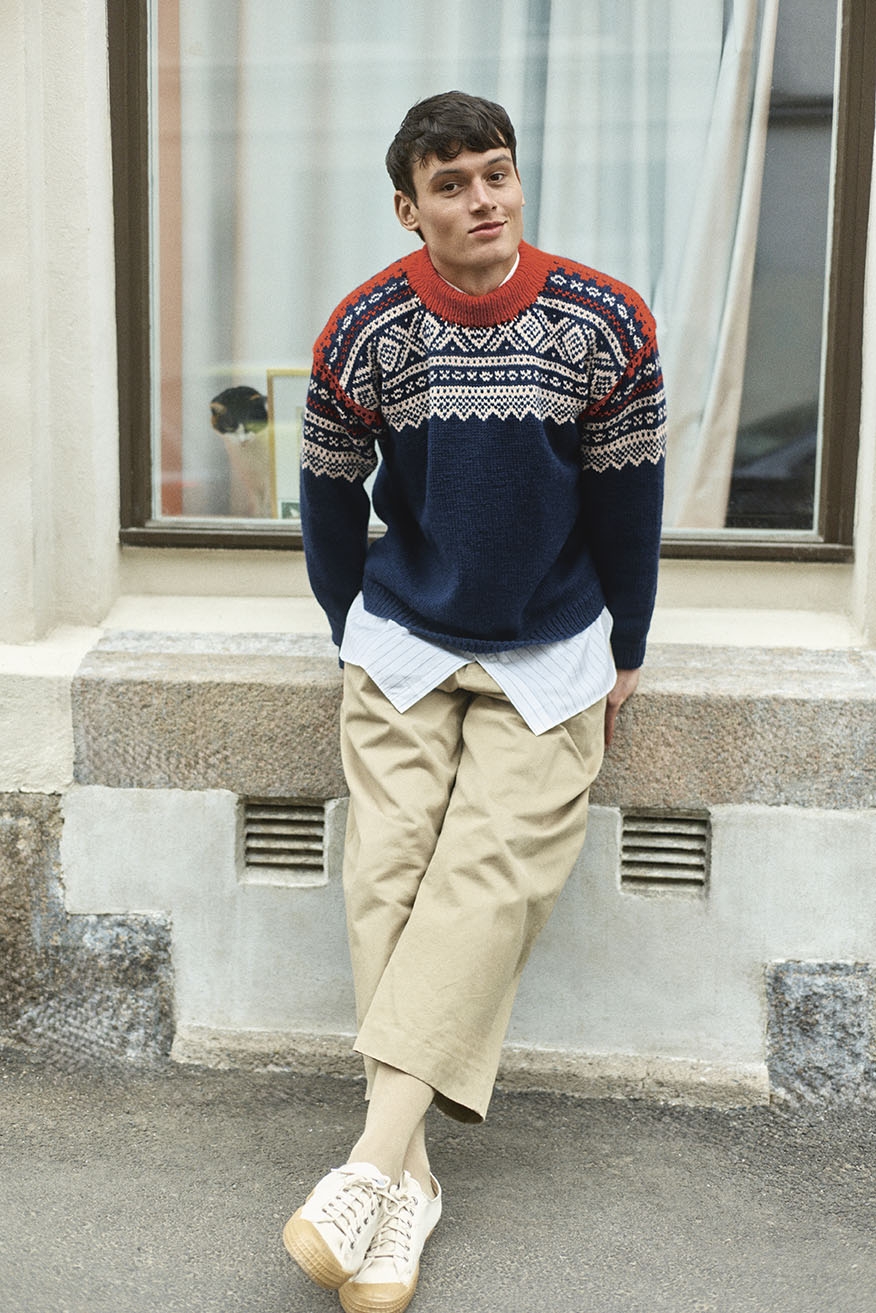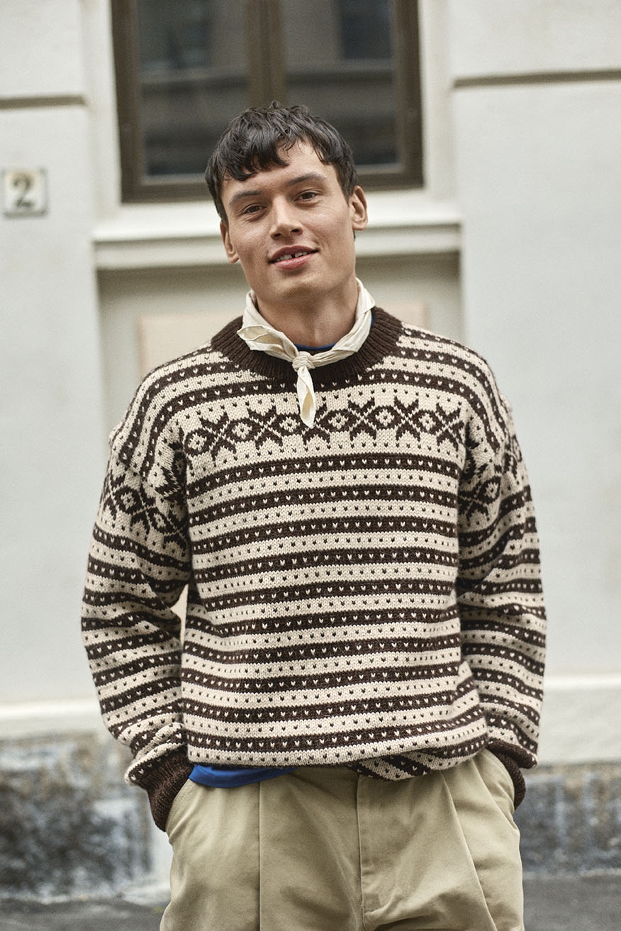 Lyngør genser til herre i KOS garn fra Sandnes Garn. Strikkepakke med garn og oppskrift.