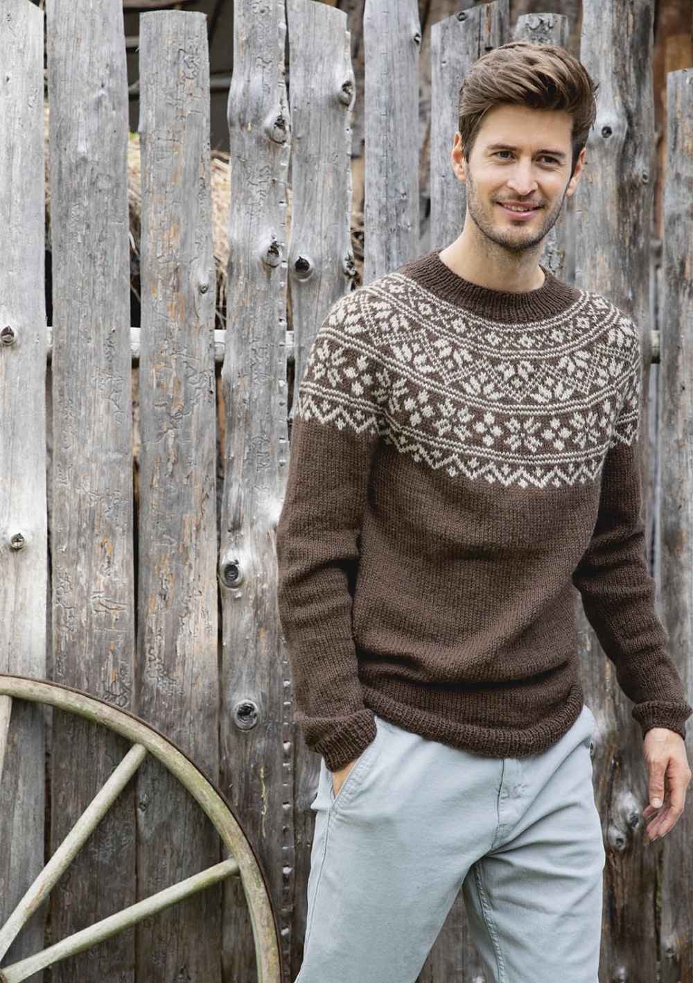 T59:6 Telemark genser herre | Alpakka Ull Brun 3571 Strikkepakke