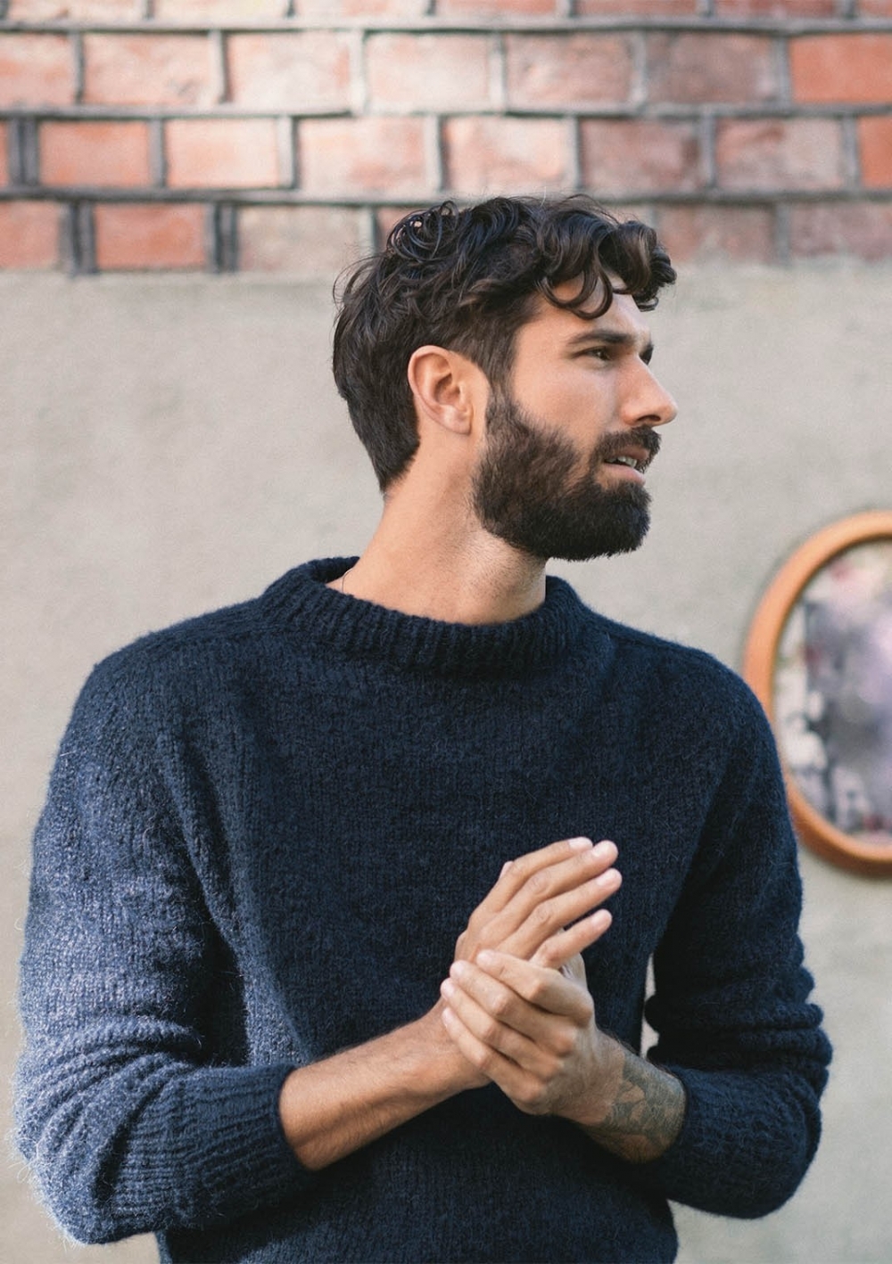 Ivar - Genser med strukturstrikk - strikket i Mitu (50% alpakka og 50% ull. Blandingen gjør garnet mykt og behagelig) Strikkepakke med oppskrift og garn. Velg farge og størrelse.