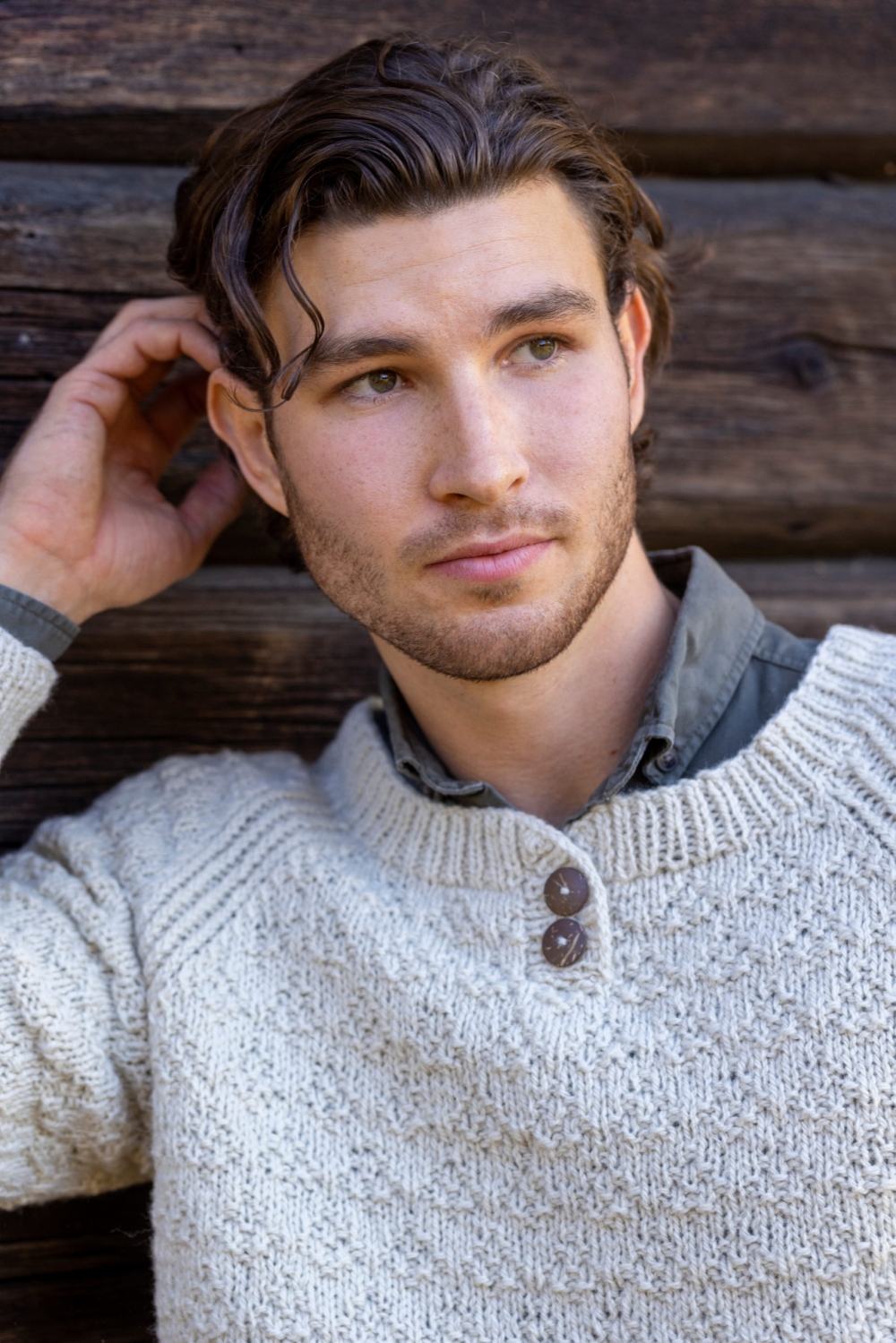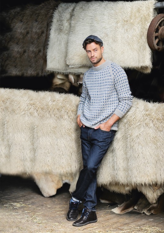 Enkeltoppskrift på Raglangenser til herre i Tumi - oppskriften selges kun sammen med garn.