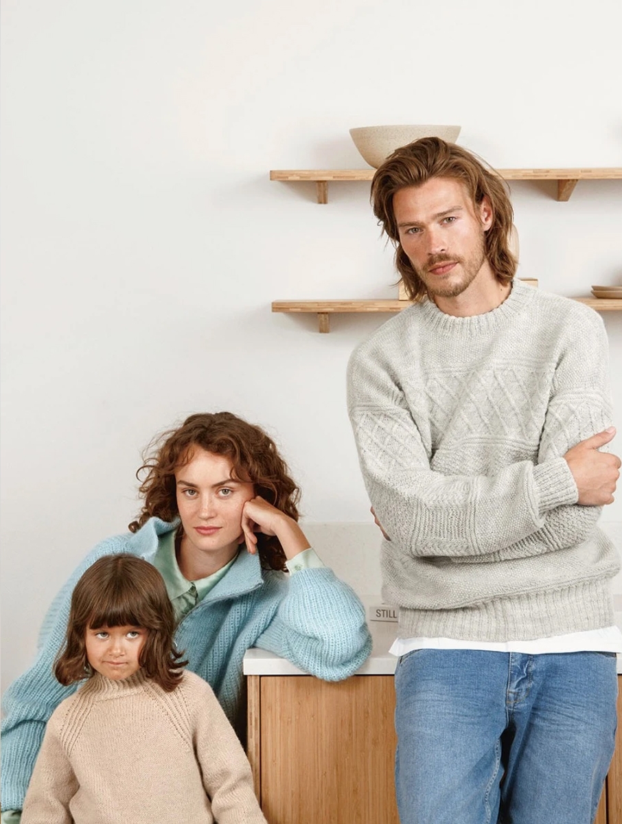 Dette er en strikkepakke strikket i Finullgarn fra Raumaull, dette gir lette luftige og bruksvennlige plagg med lang levetid.