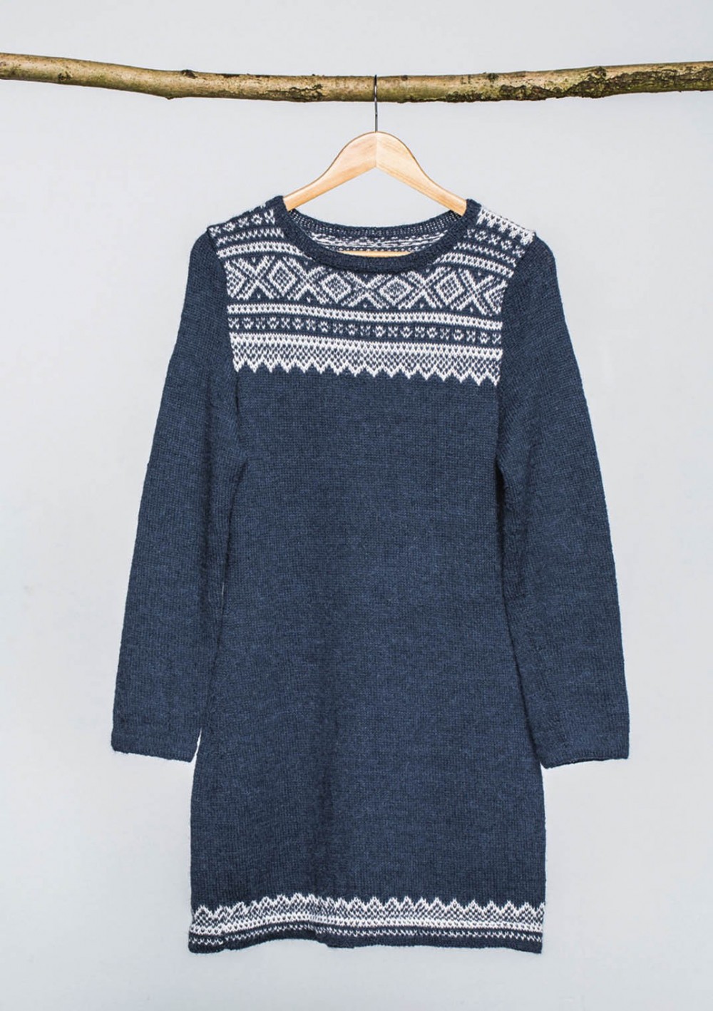 Kjole med rudolf mønster - Strikkepakke med garn og strikkeoppskrift.