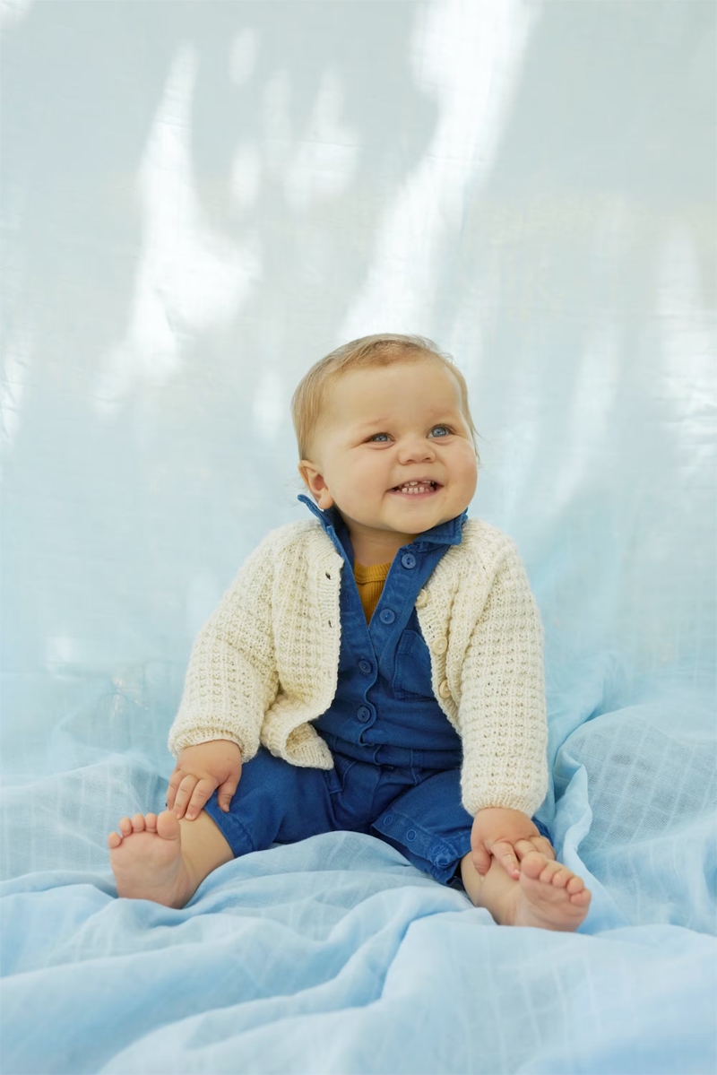 279-2 Vardejakke baby Lamullgarn lys grå blå