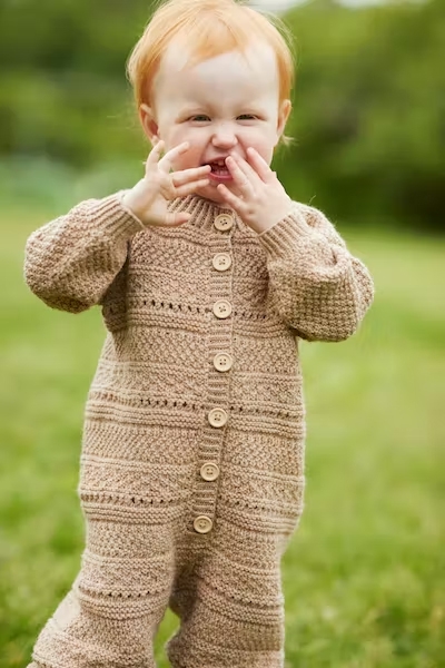 Bobodressen er en enkel glattstrikket dress som strikkes ovenfra og ned. Dressen har raglan, rund ribbestrikkede kanter. Strikkepakke med garn og oppskrift.