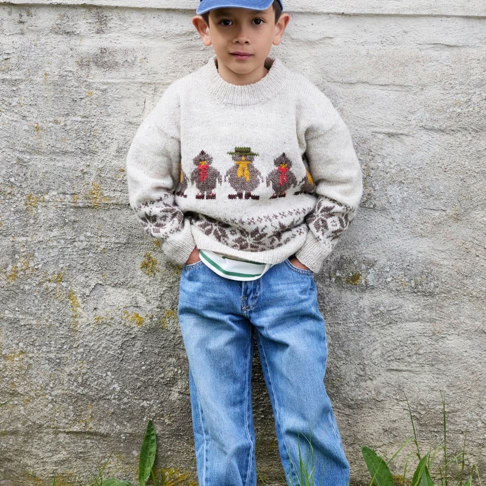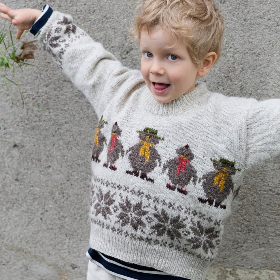 Strikkepakke på Åkergenser, barn - strikket i Kardegarn av 100% norsk ull. Uovertruffen kvalitet som i hovedsak brukes til de klassiske genserne og koftene.