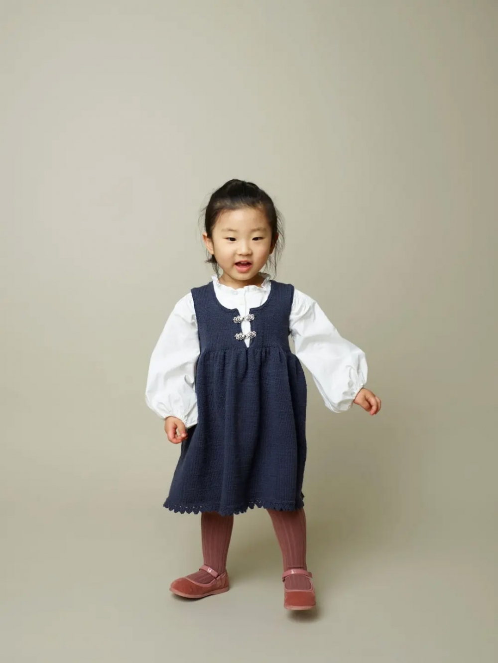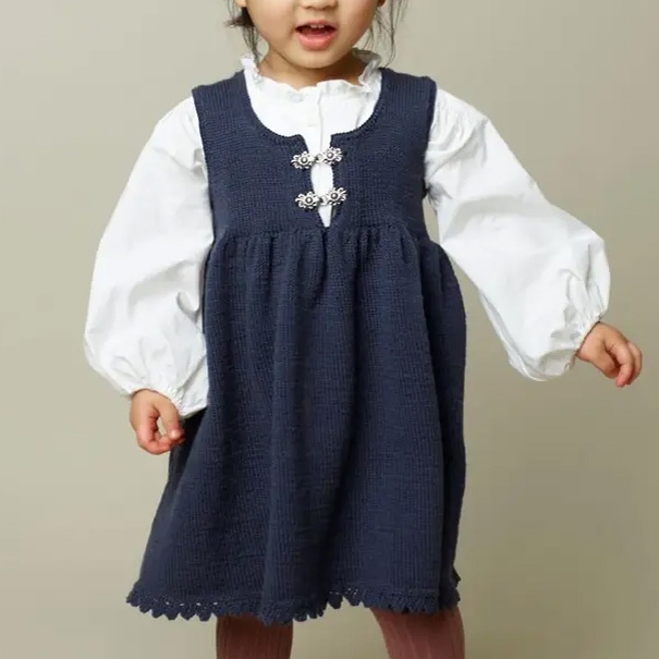 372-3 Festkjole Strikkepakke Babygarn Midnatt Rauma Garn