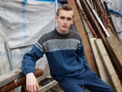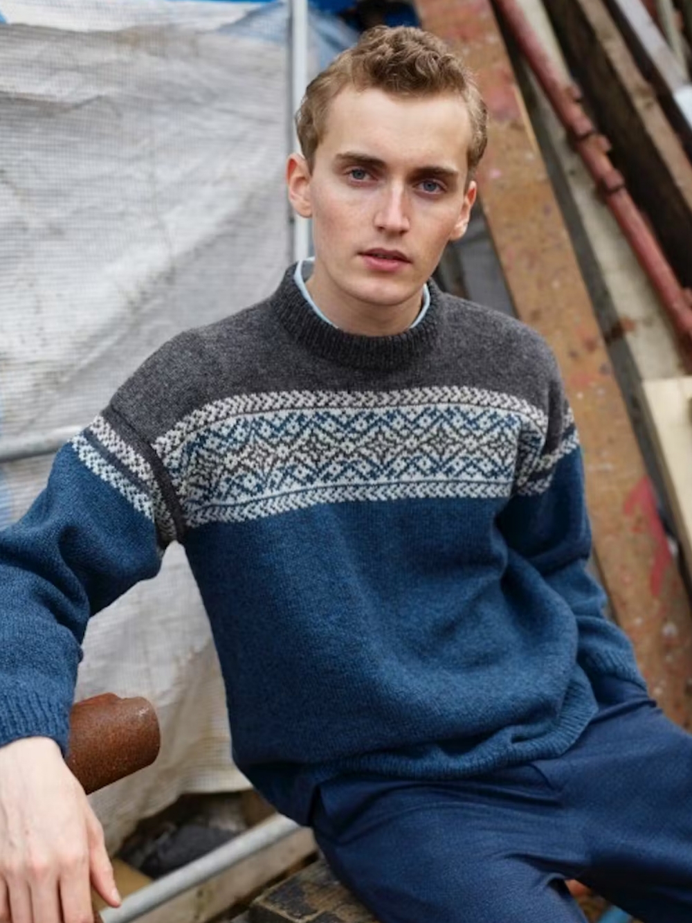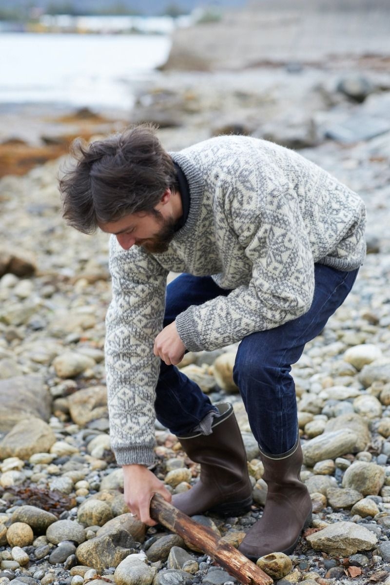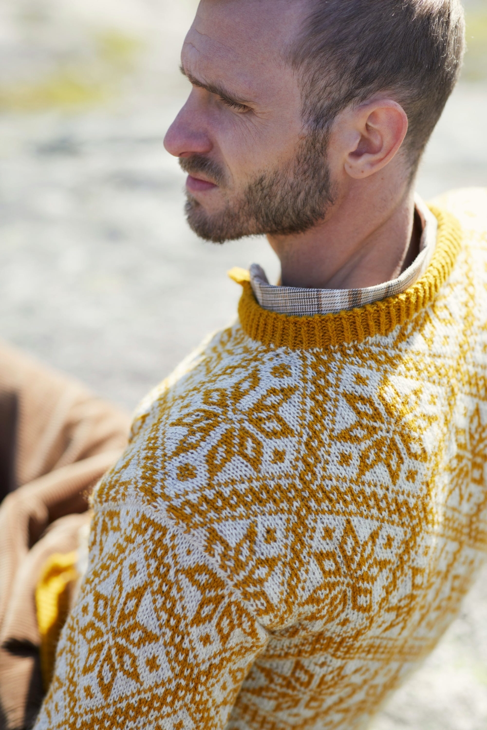 Strikkepakke på Vardegenser til herre strikket i Finull fra Rauma Garn. 100% norsk ull. Inkl. garn og mønster.