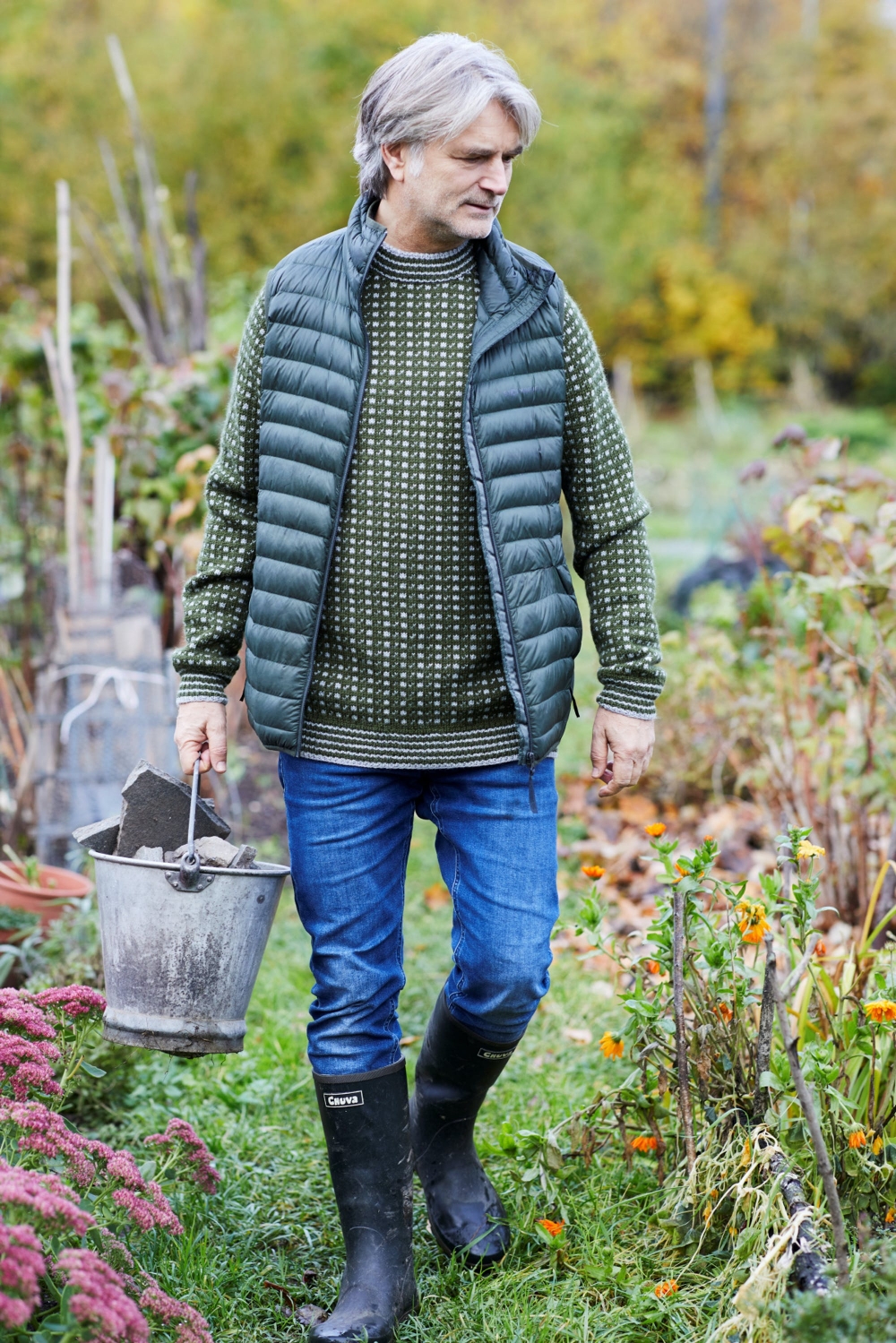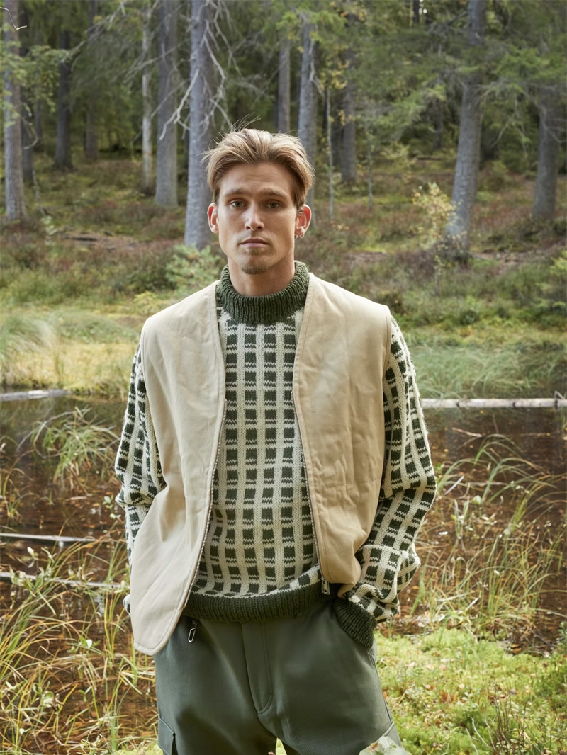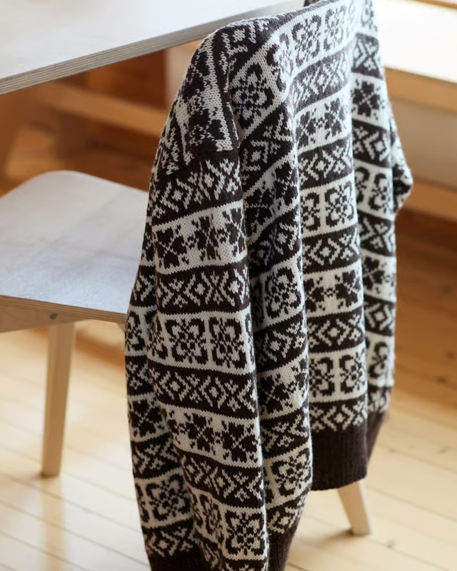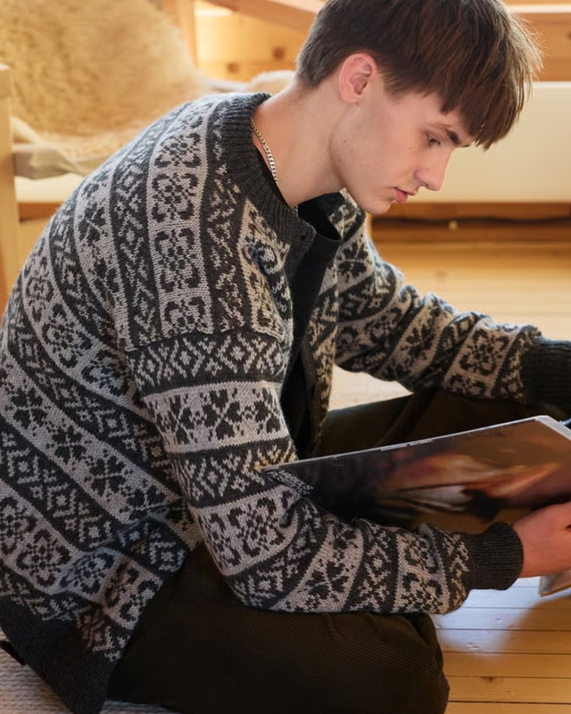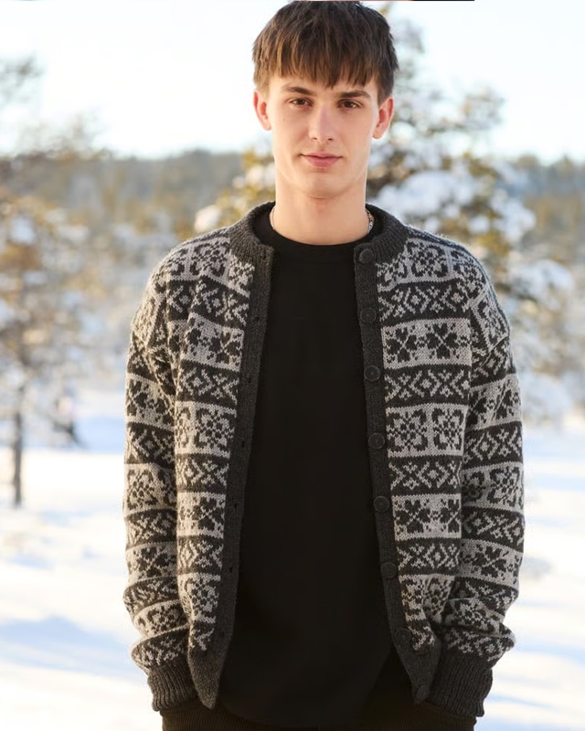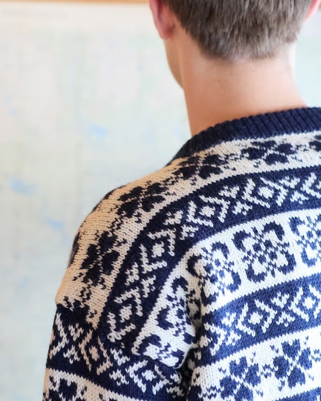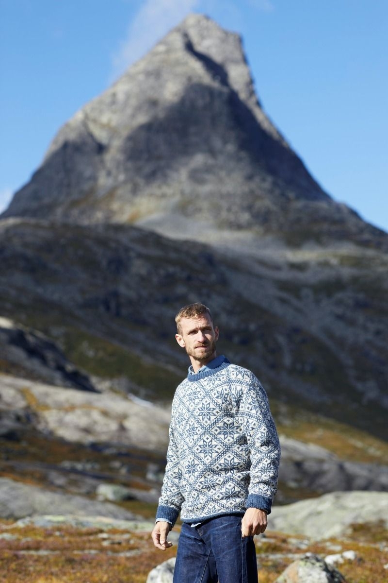 Det tradisjonsrike Setesdalsmønsteret er en klassiker som følger oss år etter år. Denne herregenseren har isydde ermer. Strikkepakke med garn og oppskrift.