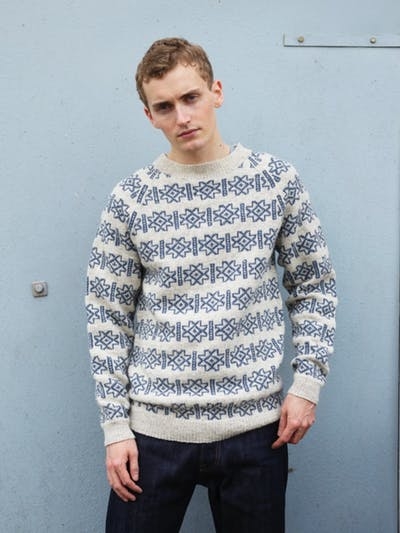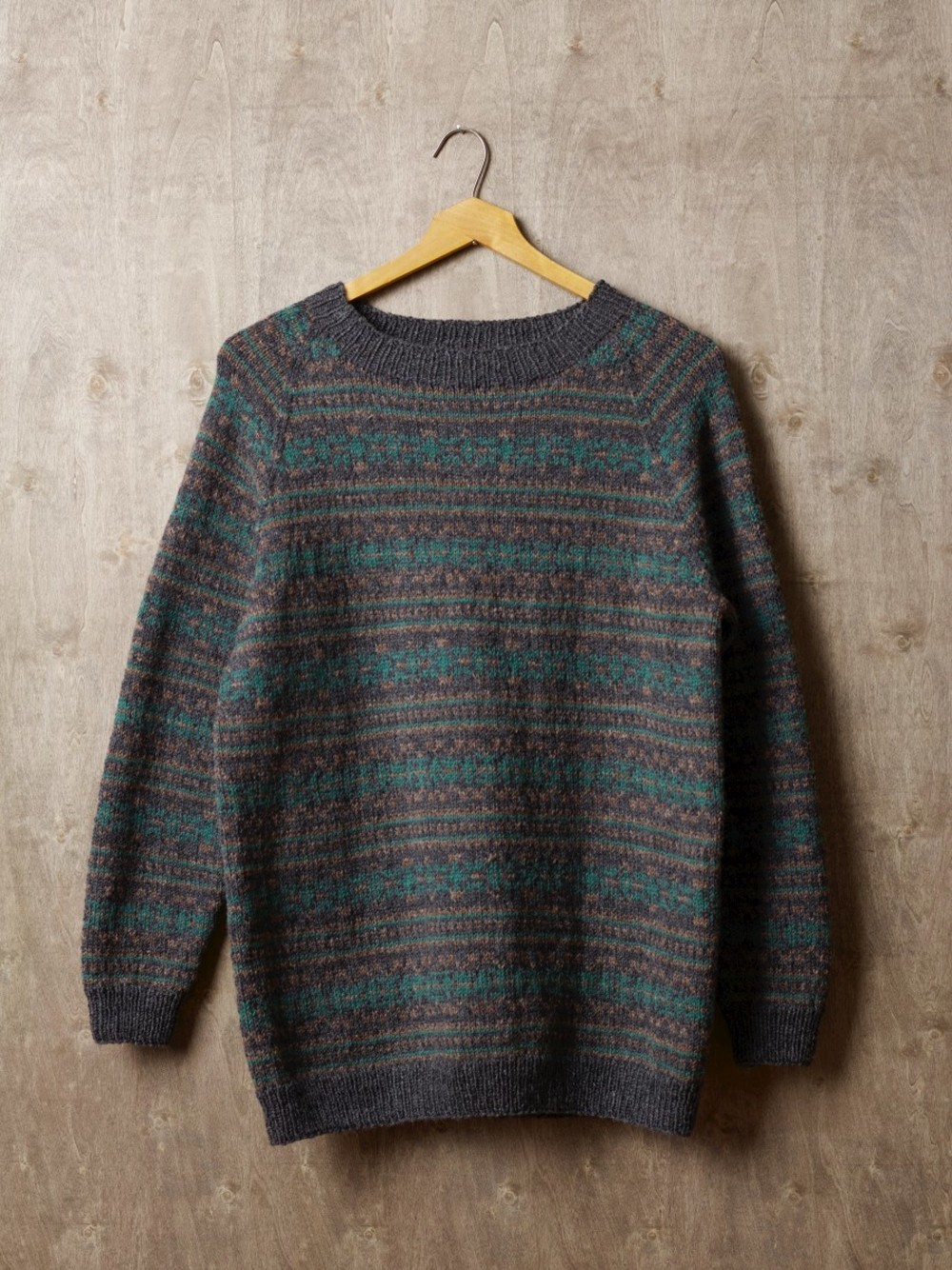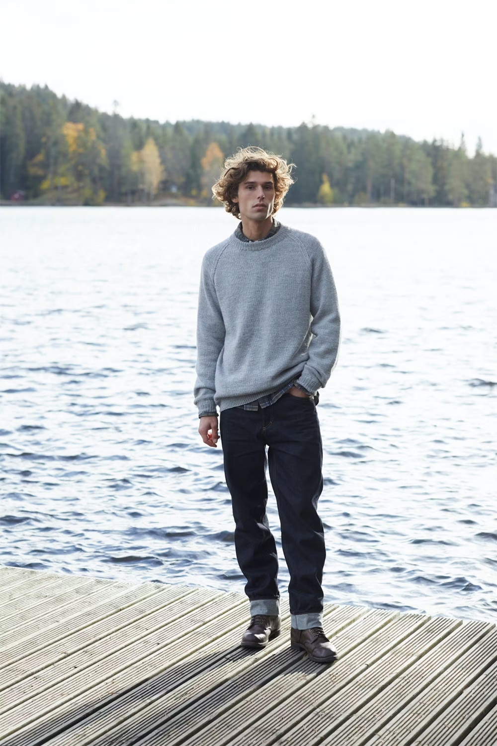 Islenderen går aldri av moten. Denne versjonen har raglanfelling med en flott bord i midten. Strikkepakken er med garn og (gratis) oppskrift fra Rauma Garn