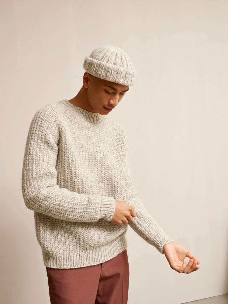 Ivar - Genser med strukturstrikk - strikket i Mitu (50% alpakka og 50% ull. Blandingen gjør garnet mykt og behagelig) Strikkepakke med oppskrift og garn. Velg farge og størrelse.