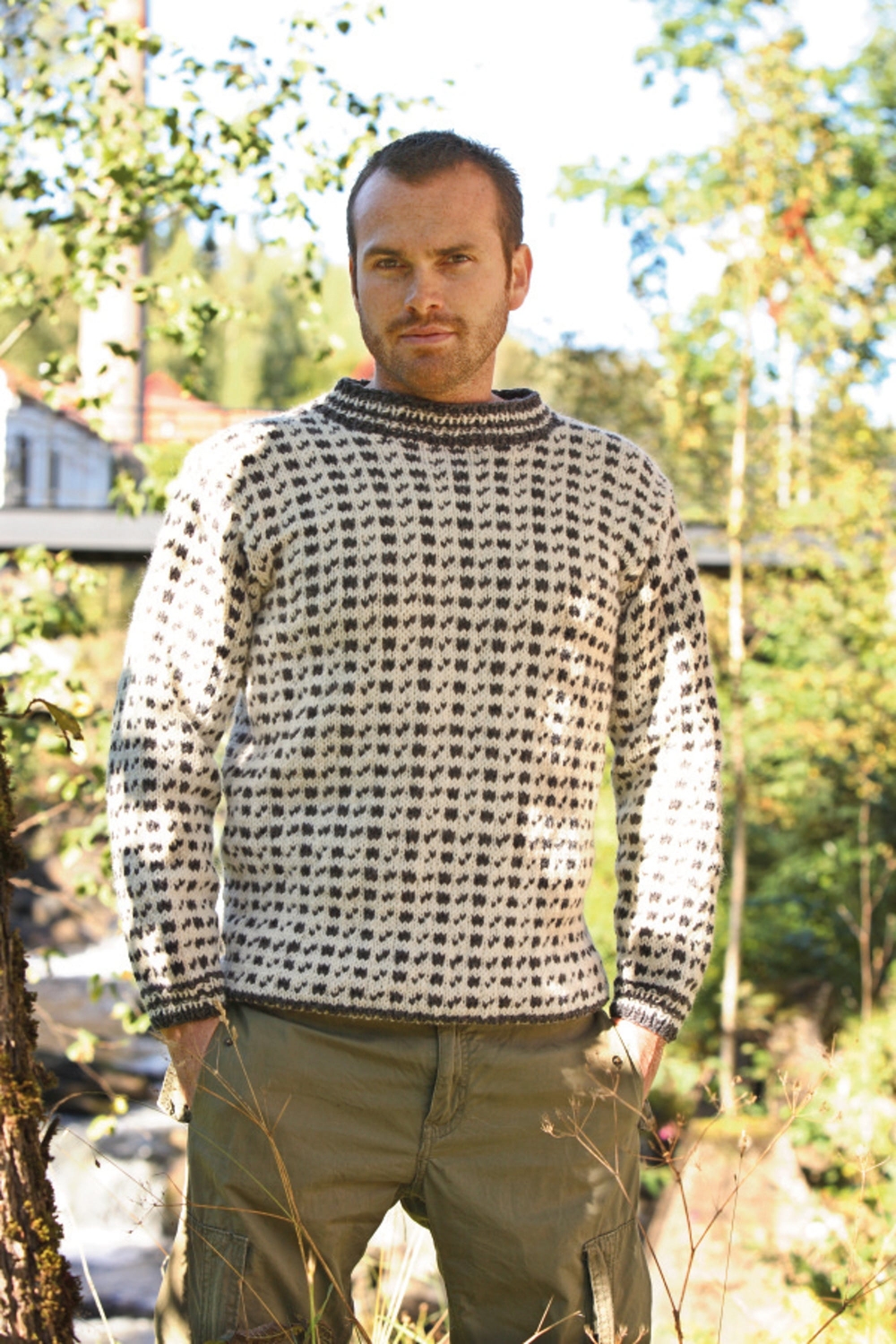 Rundfelt genser strikket i Finull, 100% norsk ull. inkl. oppskrift.