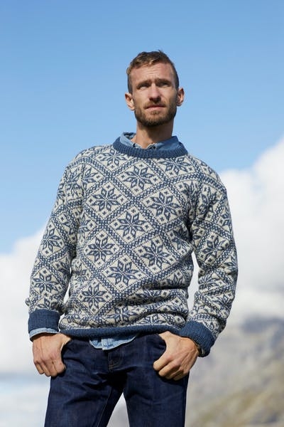 Klassisk Islender i ren norsk ull, Vams fra Rauma Garn. Strikkepakken er med garn og strikkeoppskrift.